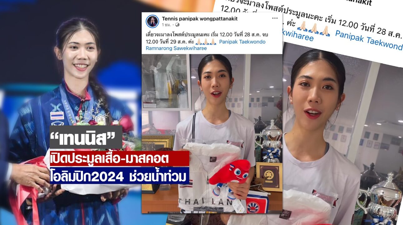 และเมื่อช่วงเช้าที่ผ่านมา น้องเทนนิส ยังโพสต์คลิป ประมูลเสื้อเทควันโด และตุ๊กตามาสคอตฟรีจีส โอลิมปิกเกมส์ 2024 ในเพจ Tennis panipak wongpattanakit เพื่อนำรายได้มอบให้กับผู้ประสบอุทกภัยทางภาคเหนือ โดยจะประมูลช่วงเที่ยงวันนี้ จนถึง เที่ยงวันพรุ่งนี้ (29 ส.ค.) .-สำนักข่าวไทย
