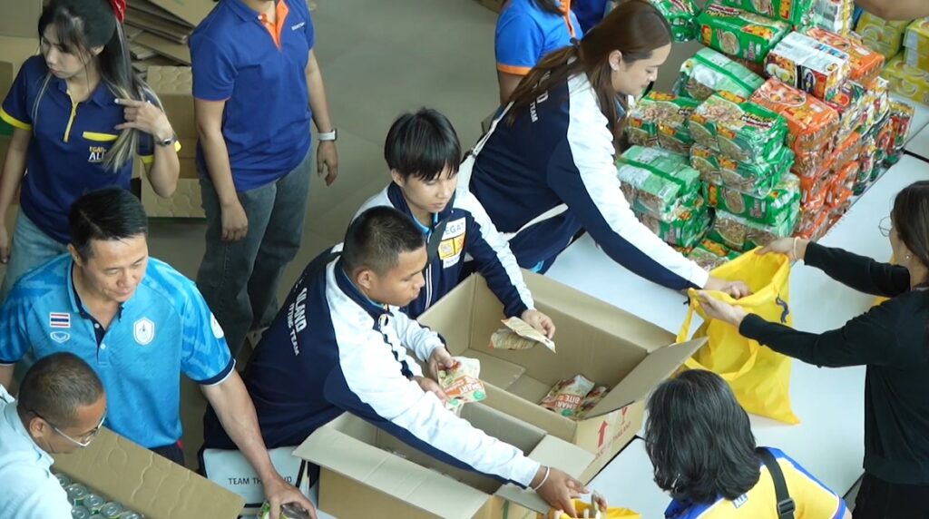 ด้านเหล่าฮีโร่นักกีฬายกน้ำหนักโอลิมปิเกมส์ 2024 “ฟ่าง” ธีรพงศ์ ศิลาชัย เหรียญเงินยกน้ำหนัก รุ่น 61 กก.ชาย, “เวฟ” วีรพล วิชุมา เหรียญเงิน รุ่น 73 กก.ชาย, “ออย” สุรจนา คำเบ้า เหรียญทองแดง รุ่น 66 กก.หญิง และ “ส้ม” ดวงอักษร ใจดี นักยกน้ำหนักทีมชาติไทย นำทีมบุคลากรจากสมาคมกีฬายกน้ำหนักสมัครเล่นแห่งประเทศไทย ร่วมบรรจุถุงยังชีพและน้ำดื่มกับผู้บริหาร และพนักงานจิตอาสาการไฟฟ้าฝ่ายผลิตแห่งประเทศไทย เพื่อนำไปช่วยเหลือผู้ประสบอุทกภัยในพื้นที่ภาคเหนือ ได้แก่ จ.แม่ฮ่องสอน จ.น่าน จ.แพร่ จ.สุโขทัย จ.พะเยา และ จ.เชียงราย ที่ศูนย์กีฬากำธน สินธวานนท์ สำนักงานใหญ่ กฟผ. จ.นนทบุรี .-สำนักข่าวไทย