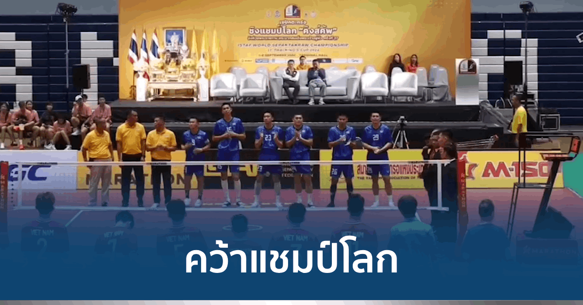 นครราชสีมา 6 ก.ย. – ตะกร้อหนุ่ม 4 คนทีมไทย แซงกลับมาชนะ เวียดนาม คว้าแชมป์โลก ส่วนทีมหญิงผ่านเข้าชิงชนะเลิศ พบ เวียดนาม วันที่ 8 ก.ย. ในศึกตะกร้อชิงแชมป์โลก