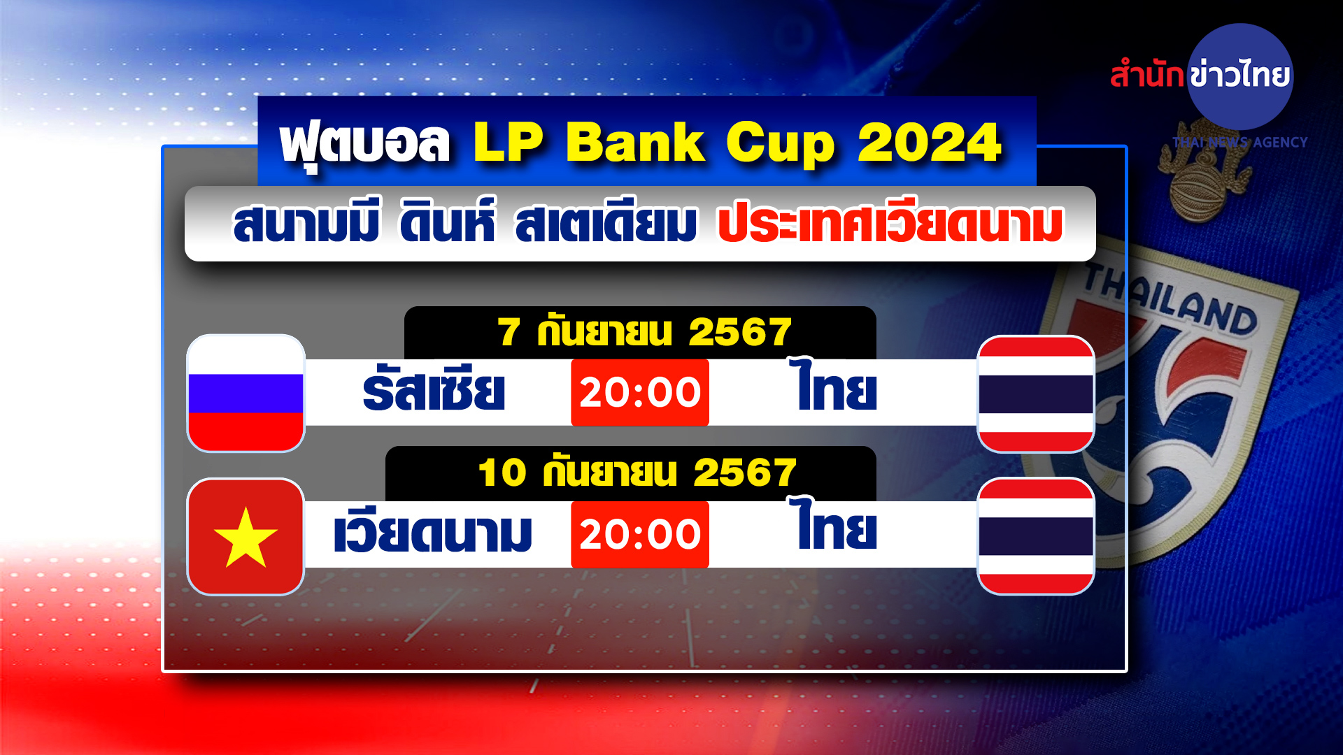ฟุตบอลอุ่นเครื่องรายการพิเศษ LP Bank Cup 2024 ตามโปรแกรมฟีฟ่าเดย์เดือนกันยายน ที่กรุงฮานอย ประเทศเวียดนาม โดยเกมระหว่าง ทีมชาติไทย พบ ทีมชาติรัสเซีย อันดับ 33 ของโลก ค่ำวันนี้ เวลา 20.00 น. เจอผลกระทบจากพายุไต้ฝุ่นยางิ แม้ว่า เมื่อวานนี้ มาซาทาดะ อิชิอิ กุนซือฟุตบอลทีมชาติไทยชาวญี่ปุ่น และ วีระเทพ ป้อมพันธุ์ กัปตันทีม ได้ร่วมแถลงความพร้อม และนำลูกทีมฝึกซ้อม ข้างมี ดินห์ สเตเดียม สนามแข่งขันจริง การฝึกซ้อมครั้งนี้ใช้เวลา 1 ชั่วโมง เน้นไปที่การฟื้นฟูร่างกายรวมถึงทบทวนแท็กติกเล็กน้อย เพื่อเตรียมพบกับรัสเซีย โดยสภาพทีมนักเตะสมบูรณ์และพร้อมลงสนาม ซึ่งตามแผนเดิมทีมชาติไทยจะได้ซ้อมใน มี ดินห์ สเตเดียม แต่เนื่องจากก่อนการซ้อมมีฝนตกลงมาอย่างหนัก ทางฝ่ายจัดจึงขอเปลี่ยนแปลงเพื่อรักษาสภาพสนาม