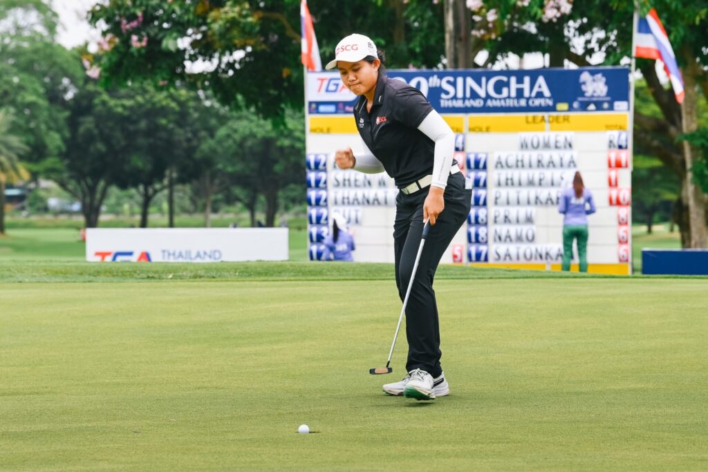 ขณะที่ “ข้าวปั้น” ฐิติกาญจน์ ธรรพสิทธิ์ ได้รองแชมป์ สกอร์รวม 11 อันเดอร์พาร์ 269 ด้านอันดับ 3 “ฝ้าย” พิมพ์พิศา รับรอง 10 อันเดอร์พาร์ 270, ที่ 4 ปริม ปราชญ์นคร 8 อันเดอร์พาร์ 272, ที่ 5 นะโม หลวงนิติกุล 6 อันเดอร์พาร์ 274