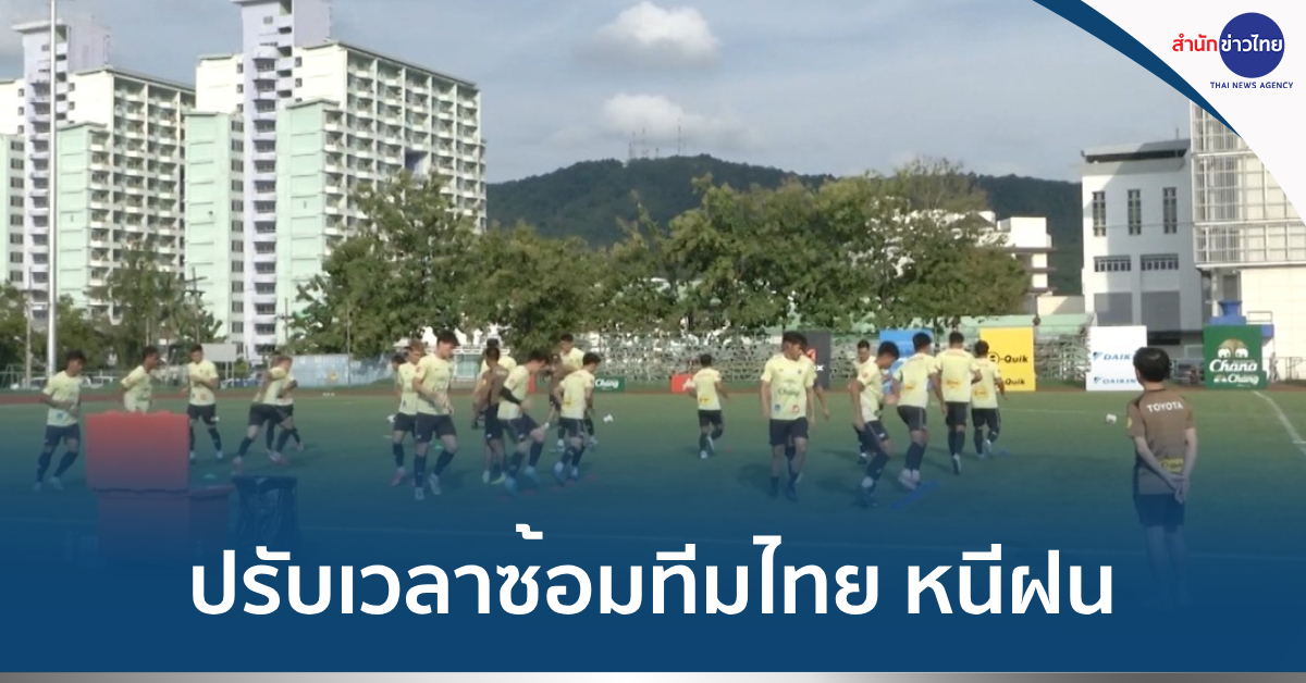 ม.สงขลานครินทร์ 13 ต.ค. – มาซาทาดะ อิชิอิ กุนซือทีมชาติไทย นำนักเตะลงฝึกซ้อมเร็วขึ้นจากเดิม 1 ชั่วโมง เพื่อหนีฝน ก่อนลงสนามนัดชิงชนะเลิศพบซีเรีย วันพรุ่งนี้ (14 ต.ค.) ศึกฟุตบอลคิงส์คัพ