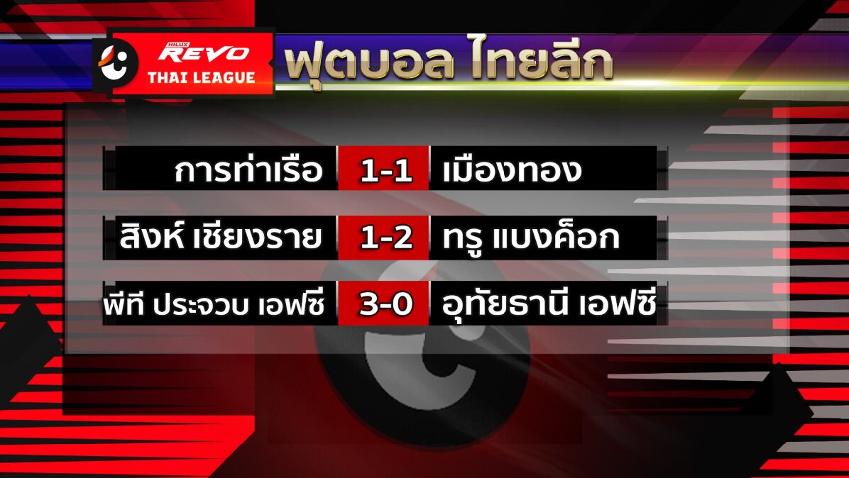 28 ต.ค. – ทรู แบงค็อก ยูไนเต็ด บุกเฉือนชนะ สิงห์ เชียงราย ยูไนเต็ด 2-1 ขยับขึ้นเป็นจ่าฝูงไทยลีก แข่งมากกว่าบุรีรัมย์ 2 นัด ส่วนการท่าเรือ เสมอ เมืองทอง ยูไนเต็ด 1-1