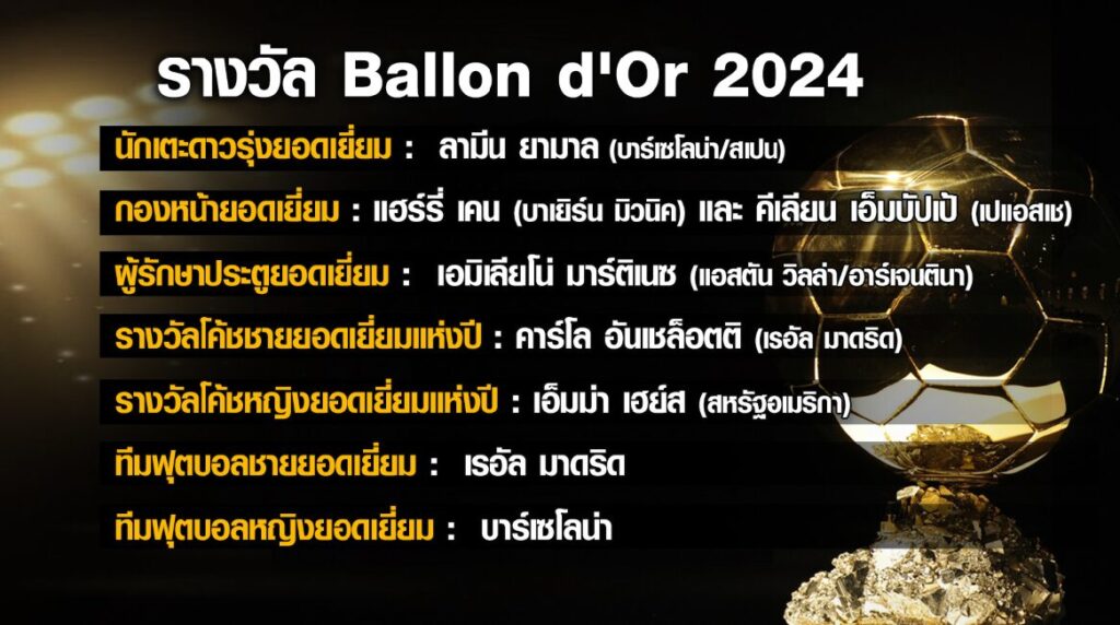 สรุปรางวัล Ballon d’Or 2024 ที่น่าสนใจ