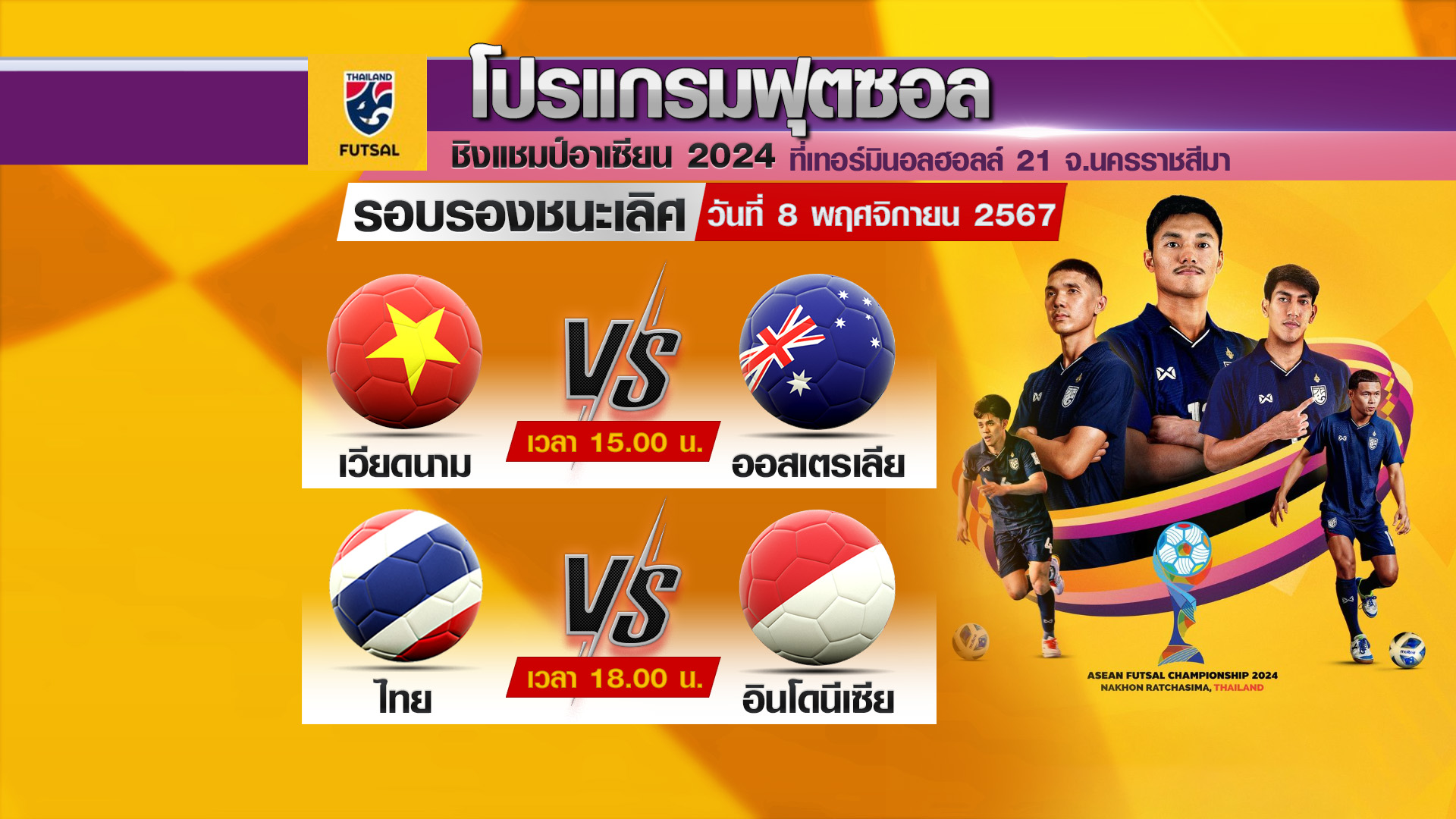 สำหรับรอบรองชนะเลิศ วันนี้ คู่แรก เวียดนาม พบ ออสเตรเลีย เวลา 15.00 น. และ ไทย พบ อินโดนีเซีย เวลา 18.00 น. ที่เทอร์มินอล 21 จ.นครราชสีมา .-สำนักข่าวไทย