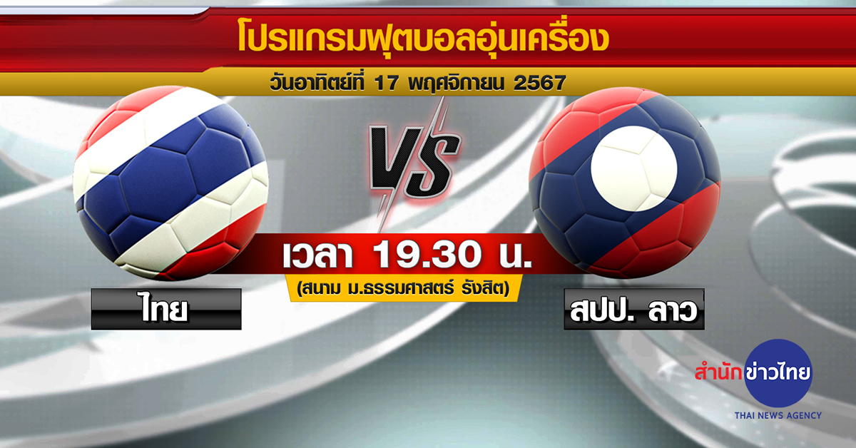 ทีมชาติไทย จะพบกับ ลาว ที่ สนามมหาวิทยาลัยธรรมศาสตร์ รังสิต ในวันที่ 17 พฤศจิกายน 2567 เวลา 19.30 น. โดยบัตรเข้าชมมี 3 ราคาคือ 500, 400 และ 200 บาท ผู้ชมนัดแรกไม่เต็มสนาม พรุ่งนี้วันหยุดไปให้กำลังใจทีมชาติไทยกันได้ .-สำนักข่าวไทย