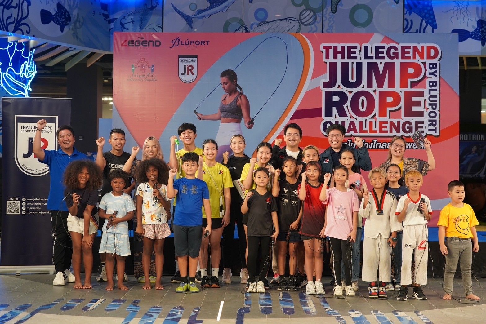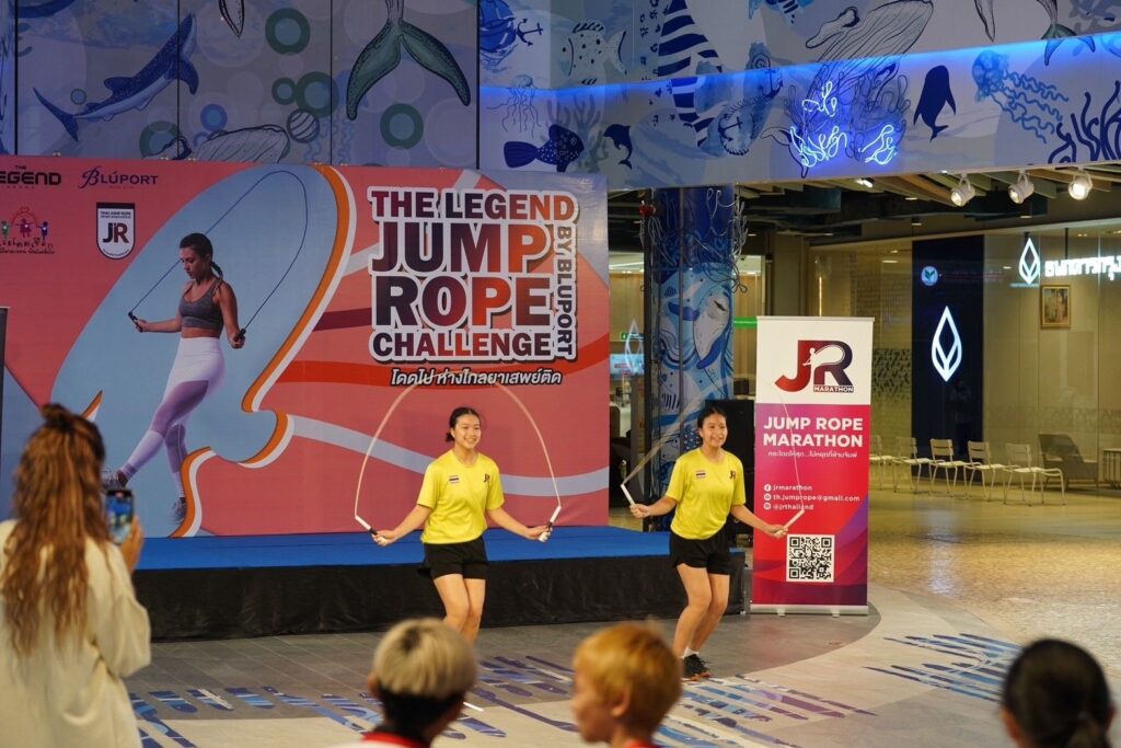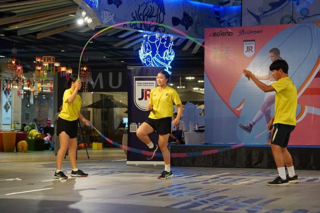 16 พ.ย.67- ศูนย์การค้า บลูพอร์ต หัวหิน จ ประจวบคีรีขันธ์ โดย ศูนย์กีฬาเดอะเลเจ้นด์อารีน่า ศูนย์การค้าบลูพอร์ต หัวหิน ร่วม กับ สมาคมกีฬาจั้มพ์โร้ปไทย จัดกิจกรรม The Legend Jump Rope Challenge by Bluport โดดไป ห่างไกลยาเสพย์ติด ในวันเสาร์ และ อาทิตย์ที่ 16-17 พฤศจิกายน 2567 โดยเปิดรับสมัคร เด็ก เยาวชน และ บุคคลทั่วไป สามารถเข้าร่วมกิจกรรมการฝึกสอน และ สาธิตการแข่งขัน โดยมีวัตถุประสงค์ 1.เพื่อเผยแพร่กีฬาจั้มพ์โร้ป สู่ โรงเรียนในพื้นที่ เพื่อเข้าถึง เด็ก และ เยาวชน ประชาชนทั่วไป รวมถึง เป็นการเฟ้นหานักกีฬาจั้มโร้ป รุ่นใหม่ เข้าเป็นนักกีฬาตัวแทนทีมชาติไทยในอนาคต 2.เพื่อให้เด็ก เยาวชนไทย และ ต่างชาติได้ใช้กิจกรรมกีฬา ห่างไกลยาเสพย์ติด 3.เป็นโครงการนำร่อง เพื่อการจัดการแข่งขันชิงแชมป์ประเทศไทย และ ชิงแชมป์โลก ในพื้นที่ อ.หัวหิน จ.ประจวบคีรีขันธ์