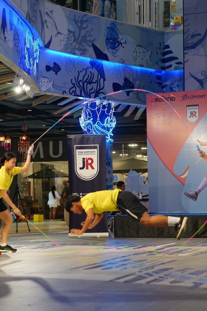 โดยในงานได้รับเกียรติจาก คุณโชคชัย วงศ์จักรภัชร์ กรรมการผู้จัดการบลูพอร์ต หัวหิน ดร.ณัชพล ตันเจริญ นายกสมาคมกีฬาจั้มพ์โร้ปไทย คุณเยาวภา บุรพลชัย ผู้อำนวยการศูนย์กีฬา เดอะเลเจ้นท์อารีน่า พร้อมด้วยผู้บริหารสมาคมฯ ร่วมพิธีเปิด โดยในพิธีเปิด มี นายนันทวัฒน์ ทองอินทรา นักกีฬาจัมพ์โร้ปทีมชาติไทย “สถิติความเร็วสูงสุดประเทศไทย” และ นางสาวพีรญา พลับพลา นางสาวพีรชยา พลับพลา นักกีฬาแชมป์โลก รุ่นเยาวชน รายการ “Wheel Pair Freestyle” ร่วมโชว์ทักษะกระโดดเชือก และ เป็นผู้ฝึกสอนสำหรับผู้เข้าร่วมกิจกรรม