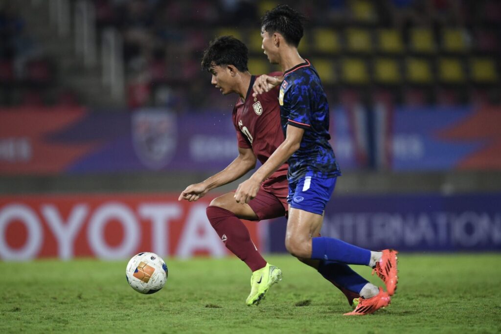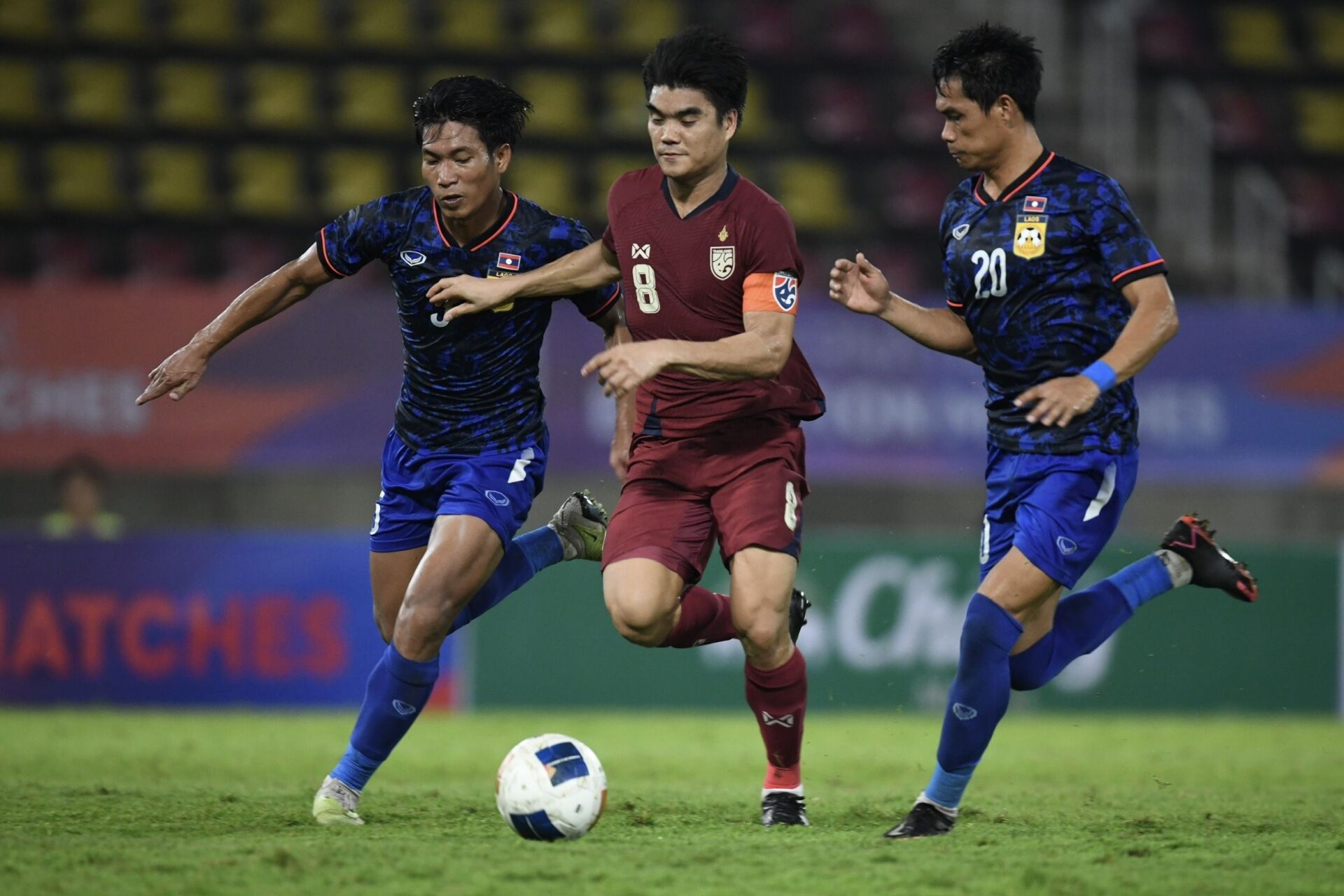 นาทีที่ 23 ไทย ได้จังหวะลุ้นทำประตูต่อเนื่อง รุ่งรัฐ ภูมิจันทึก เปิดบอลจากฝั่งขวาเข้ากรอบเขตโทษมาถึง เอกนิษฐ์ ปัญญา ได้ก้มตัวโหม่งแต่โดนบอลไม่ดีไปเข้ามือ ไซสะวาท นายด่านสปป.ลาว
