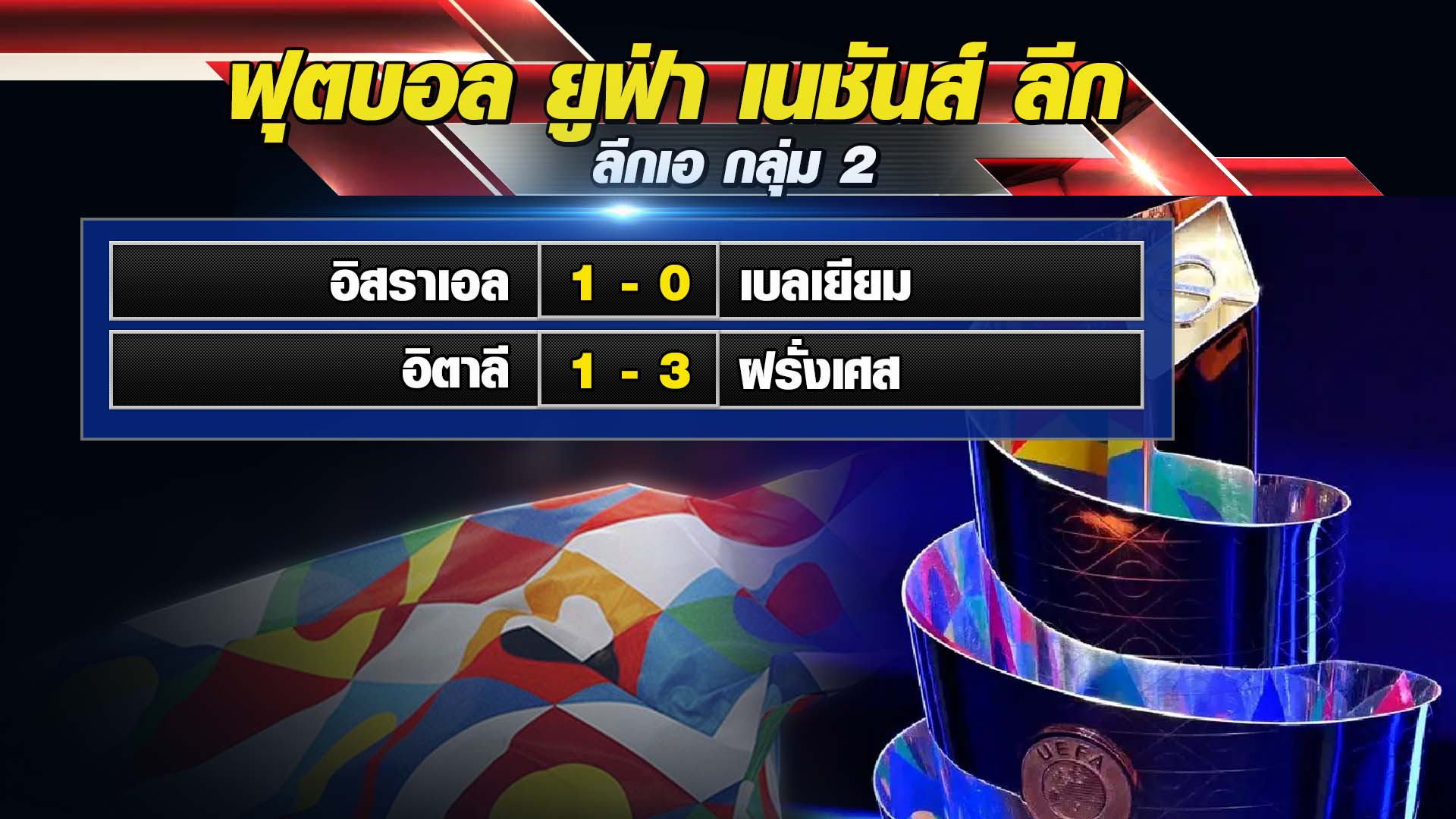 ลีกเอ กลุ่ม 2 อิตาลี แพ้ ฝรั่งเศส 1-3 ฝรั่งเศส มีเพิ่มเป็น 13 คะแนน เท่ากับอิตาลี แต่ลูกได้เสียดีกว่า 1 ลูก คว้าแชมป์กลุ่ม ส่วนอิตาลี จบรองแชมป์กลุ่ม ผลอีกคู่ อิสราเอล ชนะ เบลเยียม 1-0 .-สำนักข่าวไทย