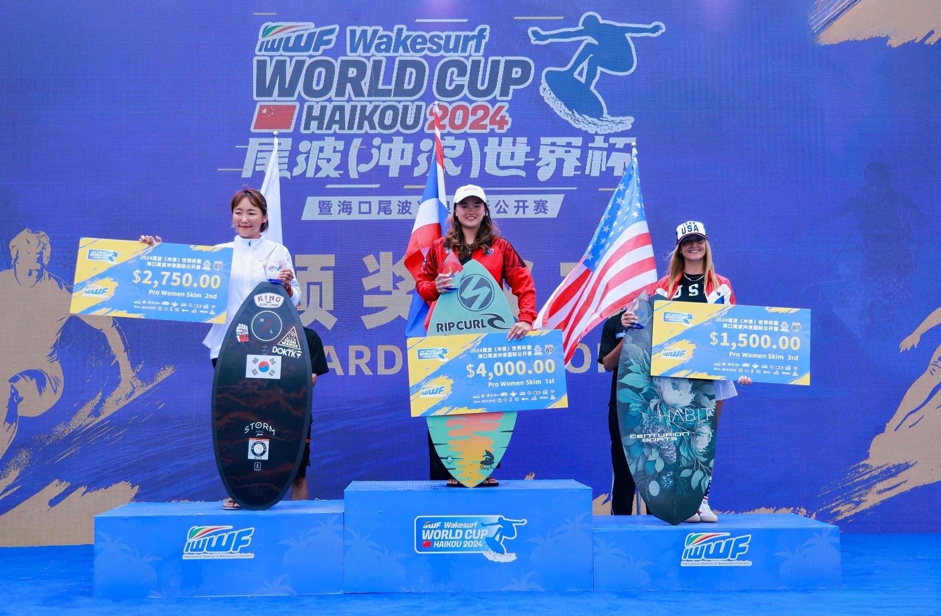 โดยผลการแข่งขันปรากฏว่า แอนนิสซา ฐิตา ฟลิน นักกีฬาลูกครึ่งไทย-ออสเตรเลีย จากภูเก็ต สามารถทำคะแนนได้ 63.33 สูงสุดในรอบชิงชนะเลิศรุ่น Open Wake Skim Women คว้าแชมป์ เวิลด์ คัพ 2024 ไปครองได้สำเร็จ