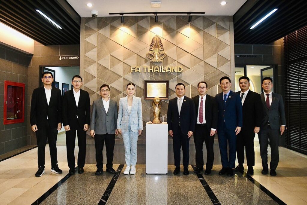 20 พ.ย.67- “มาดามแป้ง” นวลพรรณ ล่ำซำ นายกสมาคมกีฬาฟุตบอลฯ และ ประธานเจ้าหน้าที่ บริหาร บริษัท ไทยลีก นำทีมคณะผู้บริหาร นำโดย พันตำรวจโท หม่อมหลวง กิติบดี ประวิตร เลขาธิการฯ , ดร.ชาญวิทย์ ผลชีวิน อุปนายกฯ และ เลิศศักดิ์ พัฒนชัยกุล สภากรรมการ พร้อมด้วยพนักงานสมาคมฯ และ ไทยลีก ให้การต้อนรับ นายสรวงศ์ เทียนทอง รัฐมนตรีว่าการกระทรวงการท่องเที่ยวและกีฬา พร้อมคณะ หลังเดินทางมาเยี่ยมที่ทำการ สมาคมฯ