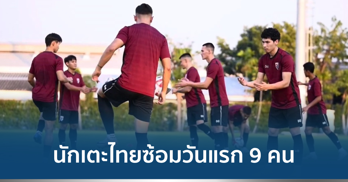 บีจี เทรนนิ่งเซ็นเตอร์ ปทุมธานี 3 ธ.ค. – นักเตะทีมชาติไทยซ้อมวันแรก 9 คน ก่อนเดินทางไปลุยศึกฟุตบอลชิงแชมป์อาเซียน นัดแรก พบ ติมอร์-เลสเต วันที่ 8 ธันวาคมนี้