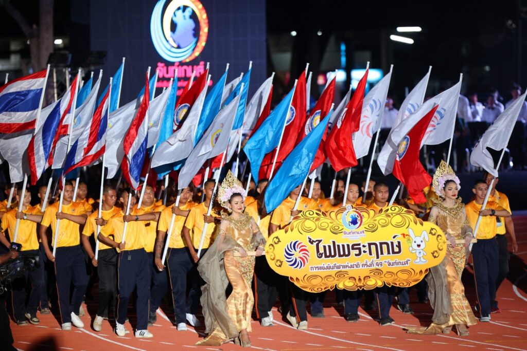9 ธ.ค.67-นายสุริยะ จึงรุ่งเรืองกิจ รองนายกรัฐมนตรี และรัฐมนตรีว่าการกระทรวงคมนาคม เป็นประธานในพิธีเปิดการแข่งขันกีฬาแห่งชาติ ครั้งที่ 49 “จันท์เกมส์“ โดยมี นายศึกษิษฏ์ ศรีจอมขวัญ รองเลขาธิการนายกรัฐมนตรีฝ่ายการเมือง, นางสาวนัทรียา ทวีวงศ์ ปลัดกระทรวงการท่องเที่ยวและกีฬา, ดร.ก้องศักด ยอดมณี ผู้ว่าการการกีฬาแห่งประเทศไทย (กกท.) , นายมนต์สิทธิ์ ไพศาลธนวัฒน์ ผู้ว่าราชการจังหวัดจันทบุรี, ผู้บริหาร กกท., ผู้บริหารจังหวัดจันทบุรี, นักกีฬาและเจ้าหน้าที่ จาก 77 จังหวัด ทั่วประเทศ และพี่น้องชาวจังหวัดจันทบุรี เข้าร่วมพิธี ณ สนามกีฬาองค์การบริหารส่วนจังหวัดจันทบุรี