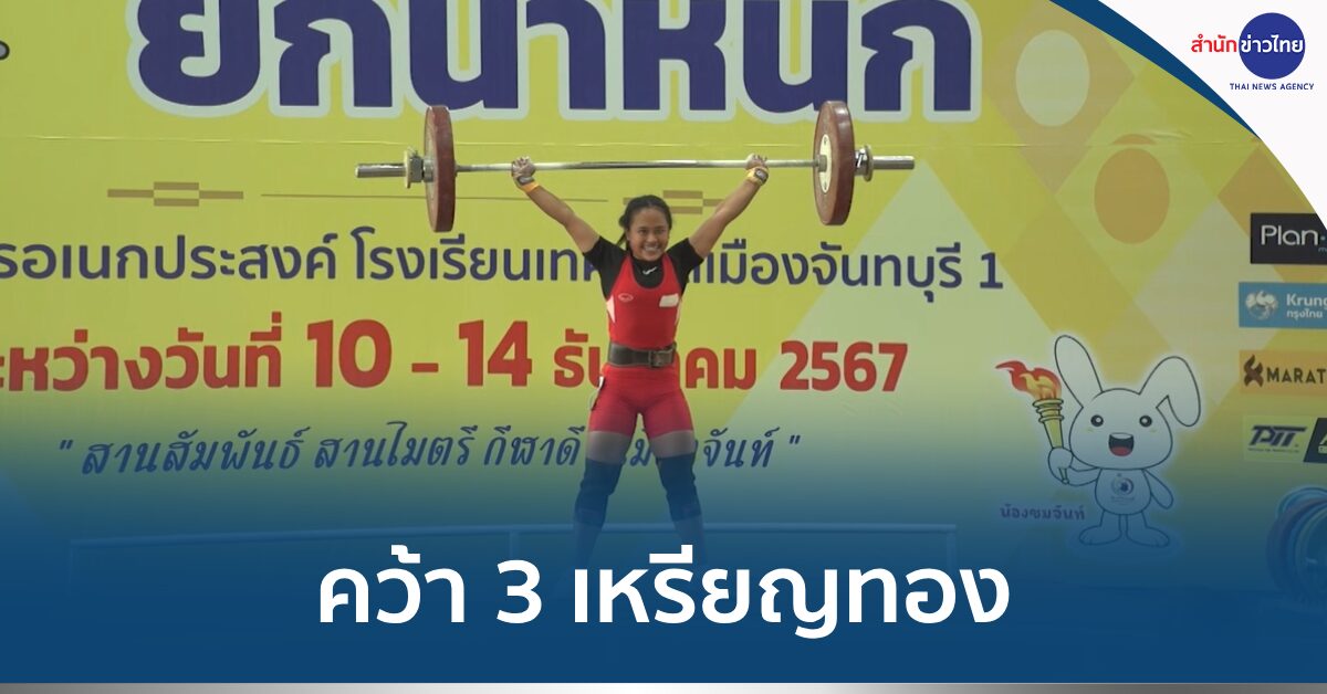 จันทบุรี 10 ธ.ค. – “น้องเหมย” จอมพลังสาวสุราษฎร์ฯ วัย 17 ปี กวาดคนเดียว 3 เหรียญทองยกน้ำหนัก กีฬาแห่งชาติ ครั้งที่ 49 “จันท์เกมส์” พร้อมทำลายสถิติรุ่นพี่