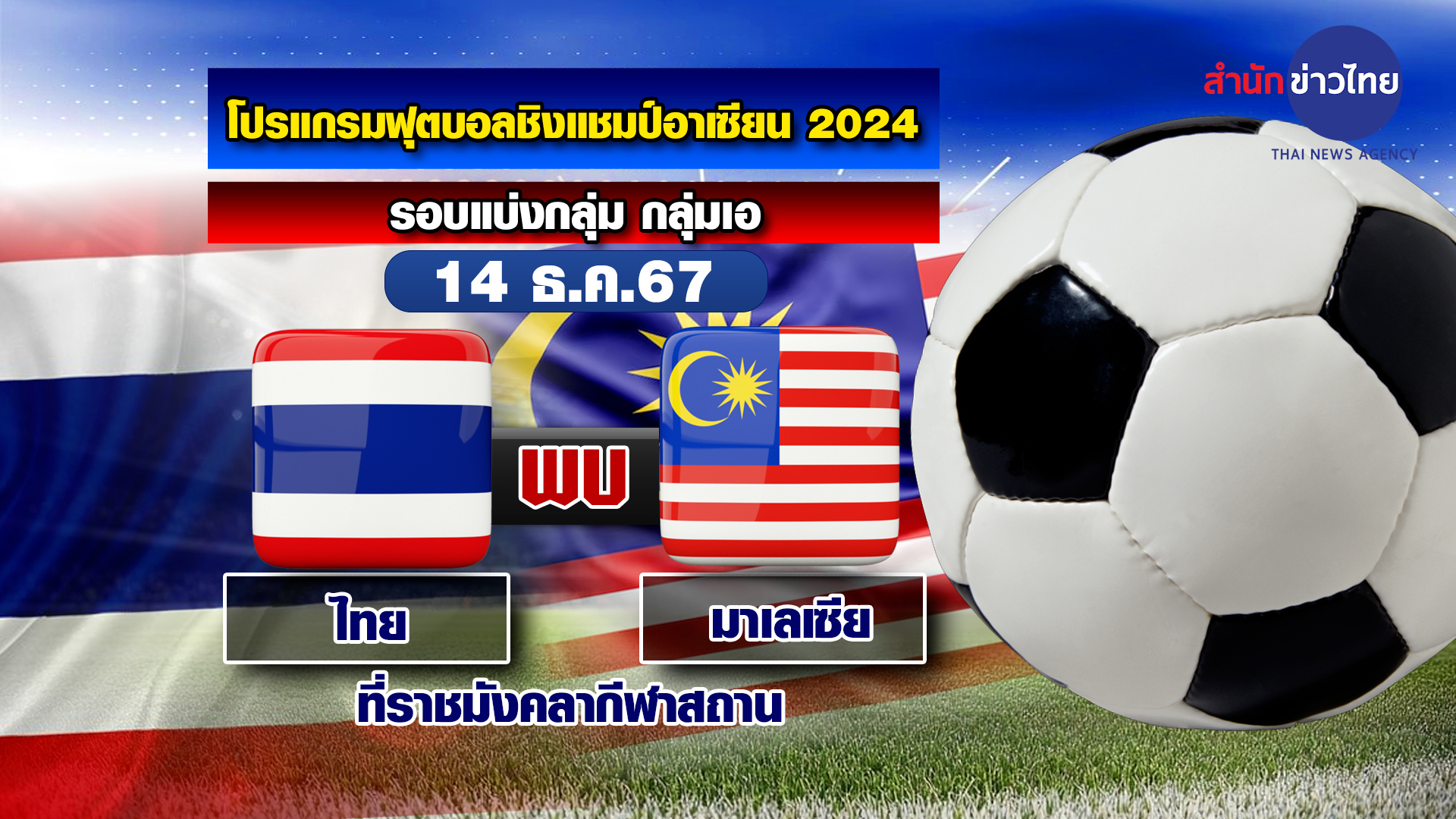 สำหรับโปรแกรมฟุตบอลชิงแชมป์อาเซียน 2024 รอบแบ่งกลุ่ม กลุ่ม เอ นัดที่ 2 วันที่ 14 ธันวาคม ไทย พบ มาเลเซีย ที่สนามราชมังคลากีฬาสถาน เวลา 20.00 น. -สำนักข่าวไทย