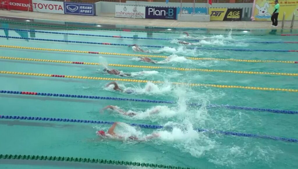 ว่ายน้ำ ชิง 7 เหรียญทอง ที่สระว่ายน้ำมหาวิทาลัยบูรพา วิทยาเขตจันทบุรี ผลัดฟรีสไตล์ 4 x 100 เมตร ชาย รอบชิงชนะเลิศ ทีมฉลามหนุ่มจากกรุงเทพมหานคร ประกอบด้วย ศรัณย์ กำทอง, เกริกชัย รัตโนสถ, รัฐวิทย์ ธรรมนันทโชติ และ ต้นน้ำ กันตีมูล ช่วยกันว่ายแตะขอบสระเป็นทีมแรก ด้วยเวลา 3 นาที 29.31 วินาที คว้าเหรียญทองมาครอง พร้อมทำลายสถิติกีฬาแห่งชาติของสุพรรณบุรี ที่ทำไว้ 3 นาที 29.56 วินาที ส่วนเหรียญเงินเป็นของ เชียงใหม่ และเหรียญทองแดง สุพรรณบุรี
