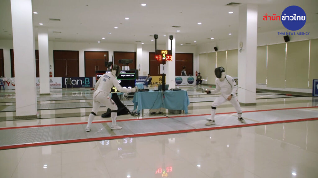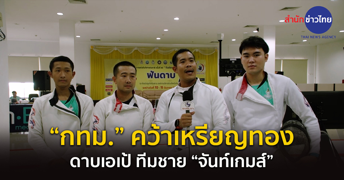 กีฬาแห่งชาติ ครั้งที่ 49 “จันท์เกมส์” วันนี้ชิงชัย 88 เหรียญทอง ฟันดาบ ชิง 2 เหรียญทอง ที่องค์การบริหารส่วนจังหวัดจันทบุรี ดาบเอเป้ ทีมชาย รอบชิงชนะเลิศ กรุงเทพมหานคร ที่ประกอบไปด้วย ปัณถวิทย์ ฉ่ำเจริญ อดีตนักฟันดาบทีมชาติไทย, กรกฎ จึงอำนวนชัย, เจษฎาภรณ์ พึ่งขุนทด และพลภูมิ จึงอำนวยชัย ที่มีลุ้นติดทีมชาติไทยลุยศึกซีเกมส์ ปลายปีหน้า เป็นฝ่ายเอาชนะ ทีมสมุทรสงคราม ไปได้ 45-24 คะแนน คว้าเหรียญทองไปครอง ส่วนสมุทรสงคราม ได้เหรียญเงิน