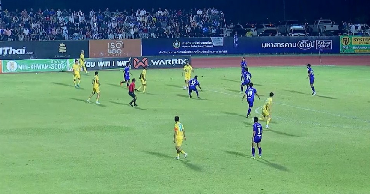 ครึ่งแรกนาที 38 กิลเยร์เม บิสโซลี มาโหม่งทำประตูให้บุรีรัมย์ ขึ้นนำก่อน 1-0 จากนั้นนาที 45+3 บิสโซลี มาทำประตูที่สองของตัวเองในเกมนี้ให้บุรีรัมย์นำ 2-0