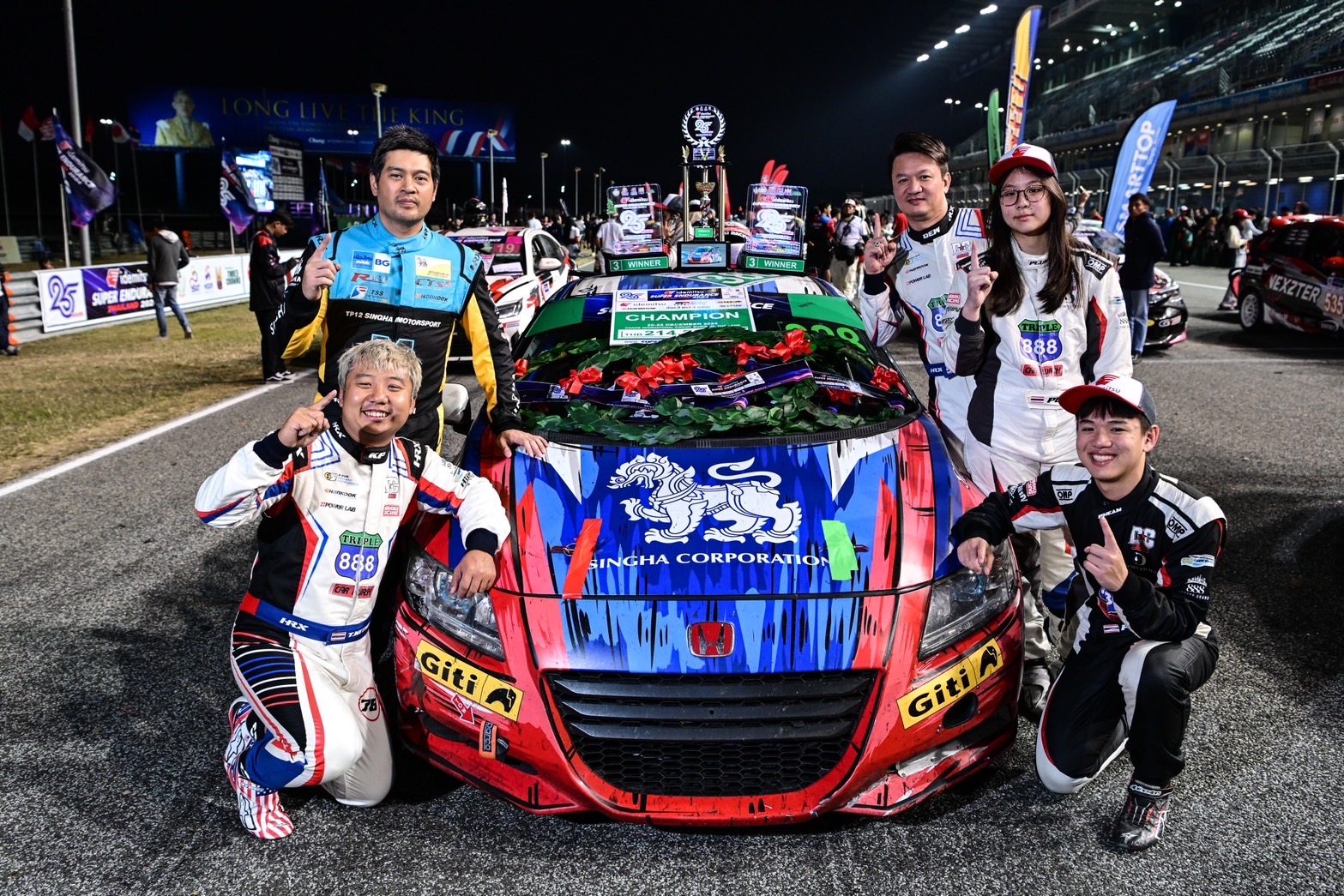 ซึ่งรถแข่งหมายเลข388 พิสูจน์ให้เห็นถึงความอึด เช่นเดียวกับนักขับทั้ง 7 คน ที่แท็กทีมในการขับตลอด 25 ชั่วโมง โดยเจ้าของรหัส TP12 มีส่วนสำคัญในการขับในช่วงไนท์เรซ ก่อนที่สุดท้ายรถแข่งเบอร์ 388 จะวิ่งผ่านเส้นชัยเป็นอับดับ 1 ของรุ่นดิวิชั่น 3 คว้าแชมป์ไปครองได้อย่างยิ่งใหญ่ หลังขับไปได้ทั้งสิ้น 680 รอบสนาม พร้อมจบอันดับ 8 โอเวอร์ออล