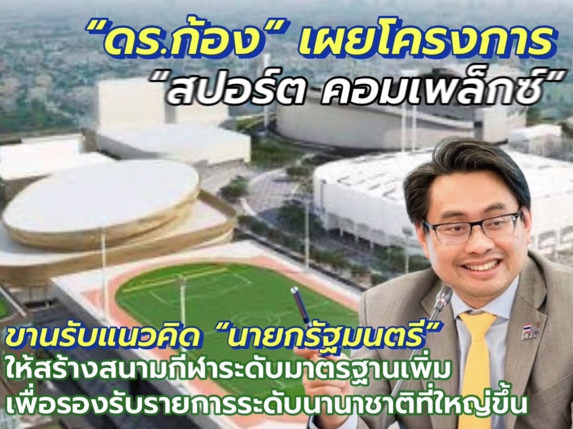 “สำหรับเรื่องการสร้างสนามกีฬาระดับมาตรฐานเพิ่มเติม นั้น ในส่วนของ กกท. เราได้วางแผนการดำเนินงานโครงการ “สปอร์ตคอมเพล็กซ์” (Sport Complex) ตามแผนงานฯ ของ กกท. ที่ต้องการสร้างสนามกีฬาระดับมาตรฐานเพิ่มเติม เพื่อรองรับมหกรรมกีฬารายการระดับนานาชาติที่ใหญ่ขึ้น มาสักระยะแล้ว ซึ่งก็ตรงกับแนวคิดของนายกรัฐมนตรี นั่นก็คือ โครงการพัฒนาการก่อสร้าง “สปอร์ต คอมเพล็กซ์” (Sport Complex) ที่เป็นสนามกีฬาขนาดใหญ่แห่งใหม่ใน อ.บางละมุง จ.ชลบุรี บนที่ดินรวม 1,500-2,000 ไร่ และเป็นส่วนหนึ่งของโครงการ “เมืองใหม่อีอีซี” โดยโครงการนี้ประกอบด้วยสนามกีฬาแห่งชาติ (National Stadium) แห่งใหม่ และสปอร์ตคอมเพล็กซ์ที่มีหลายชนิดกีฬา สามารถจัดคอนเสิร์ตและใช้งานได้หลายวัตถุประสงค์ คาดมูลค่าการลงทุนอยู่ที่ “หลักหมื่นล้านบาท” โดยจะขอรับการสนับสนุนงบจากรัฐบาลส่วนหนึ่ง และเปิดให้เอกชนเข้ามาลงทุนอีกส่วนหนึ่ง ภายใต้โมเดลโครงการร่วมลงทุนรัฐ-เอกชน