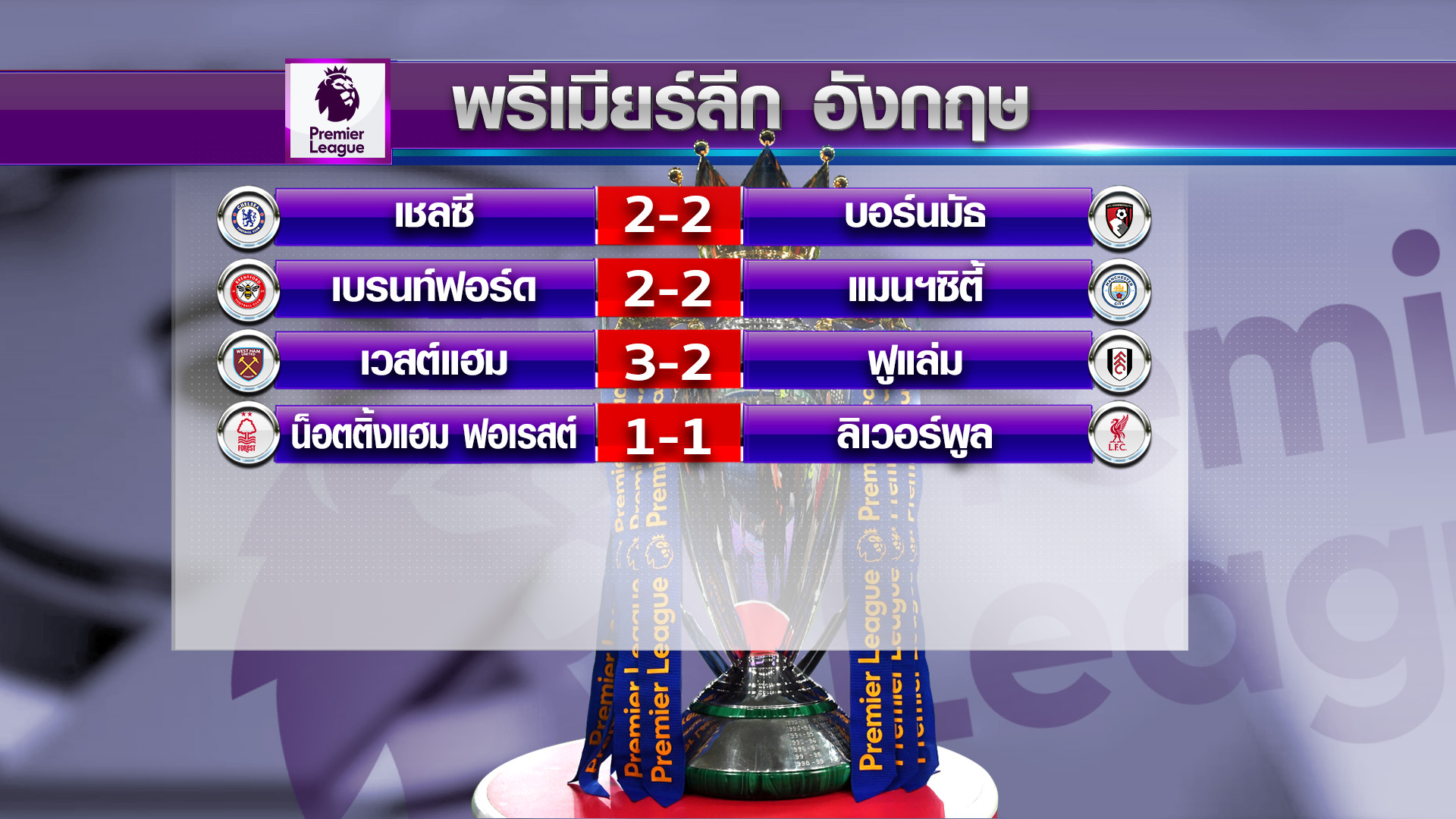 ผลคู่อื่น เชลซี เสมอ บอร์นมัธ 2-2, เบรนท์ฟอร์ด เสมอ แมนฯ ซิตี 2-2 และเวสต์แฮม ชนะ ฟูแลม 3-2 ผลเอฟเอ คัพ อังกฤษ รอบ 3 เปรสตัน นอร์ธเอนด์ ชนะ ชาร์ลตัน 2-1, แมนส์ฟิลด์ แพ้ วีแกน 0-2 และเลย์ตัน โอเรียนท์ ชนะ ดาร์บี้ เคาน์ตี้ 2-1 .-สำนักข่าวไทย