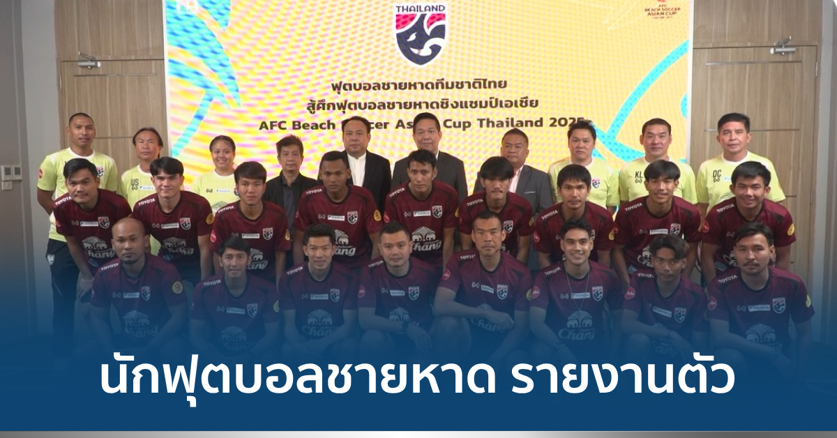 นักฟุตบอลชายหาดทีมชาติไทยทั้งหมด 17 คน จาก 19 คน เข้ารายงานตัวที่สมาคมกีฬาฟุตบอลแห่งประเทศไทยฯ ขาดเพียง มาซายูกิ โยชิดะ และ ไฟซอล มะลี ที่ติดภารกิจจะเดินทางตามมาสมทบภายหลัง เตรียมสู้ศึกฟุตบอลชายหาดชิงแชมป์เอเชีย AFC Beach Soccer Asian Cup Thailand 2025 ระหว่างวันที่ 20-30 มีนาคม 68 ที่หาดจอมเทียน เมืองพัทยา จังหวัดชลบุรี ภายใต้การคุมทัพของ “โค้ชเอก” เศรษฐกรชัย ชื่นตา โดยมี “บิ๊กป๋อม” อดิศักดิ์ เบ็ญจศิริวรรณ อุปนายกสมาคมกีฬาฟุตบอลฯ เดินทางมาต้อนรับ พร้อมกล่าวสร้างขวัญกำลังใจให้กับนักเตะ