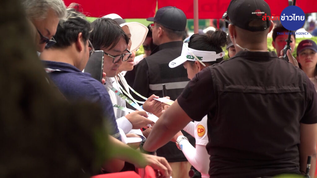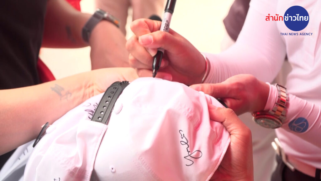 สีสัน ฮอนด้า แอลพีจี ไทยแลนด์ 2025 ไปชมภาพบรรยากาศการแจกลายเซ็นให้กับแฟนคลับของ “โปรจีน” ที่สร้างรอยยิ้มและความประทับใจให้กับแฟนกอล์ฟ โดยเฉพาะแฟนคลับสาวน้อย 2 คนนี้ ที่อาจมีแรงบันดาลใจก้าวขึ้นไปเป็นโปรกอล์ฟระดับโลกในอนาคตข้างหน้าก็เป็นได้ .-สำนักข่าวไทย
