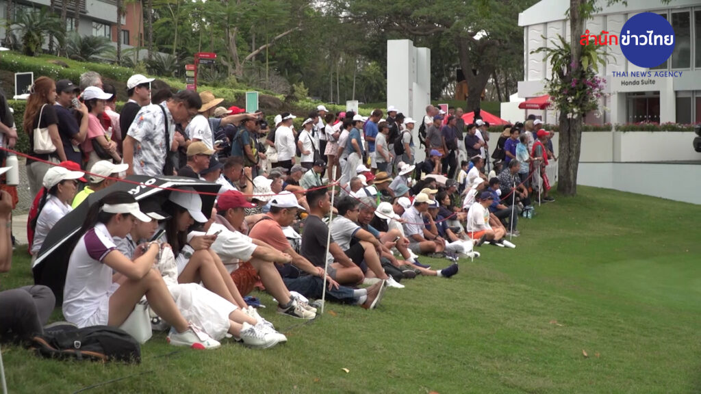 22 ก.พ.- กอล์ฟฮอนด้า แอลพีจีเอ ไทยแลนด์ 2025 วันที่ 3 มีแฟนกอล์ฟทั้งชาวไทยและต่างชาติ เข้าชมการแข่งขันกว่า 1 หมื่นคน ส่วน “โปรโม-โปรจีน” รั้งอันดับ 3 ร่วมกัน
