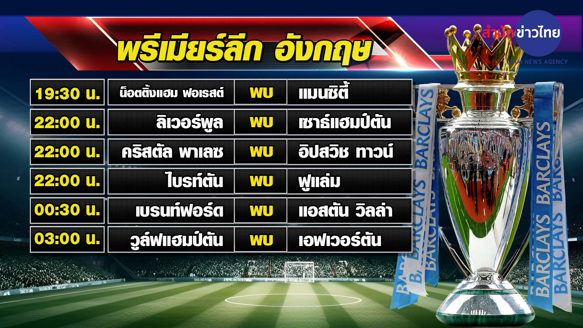 โปรแกรมพรีเมียร์ลีก อังกฤษ คืนนี้