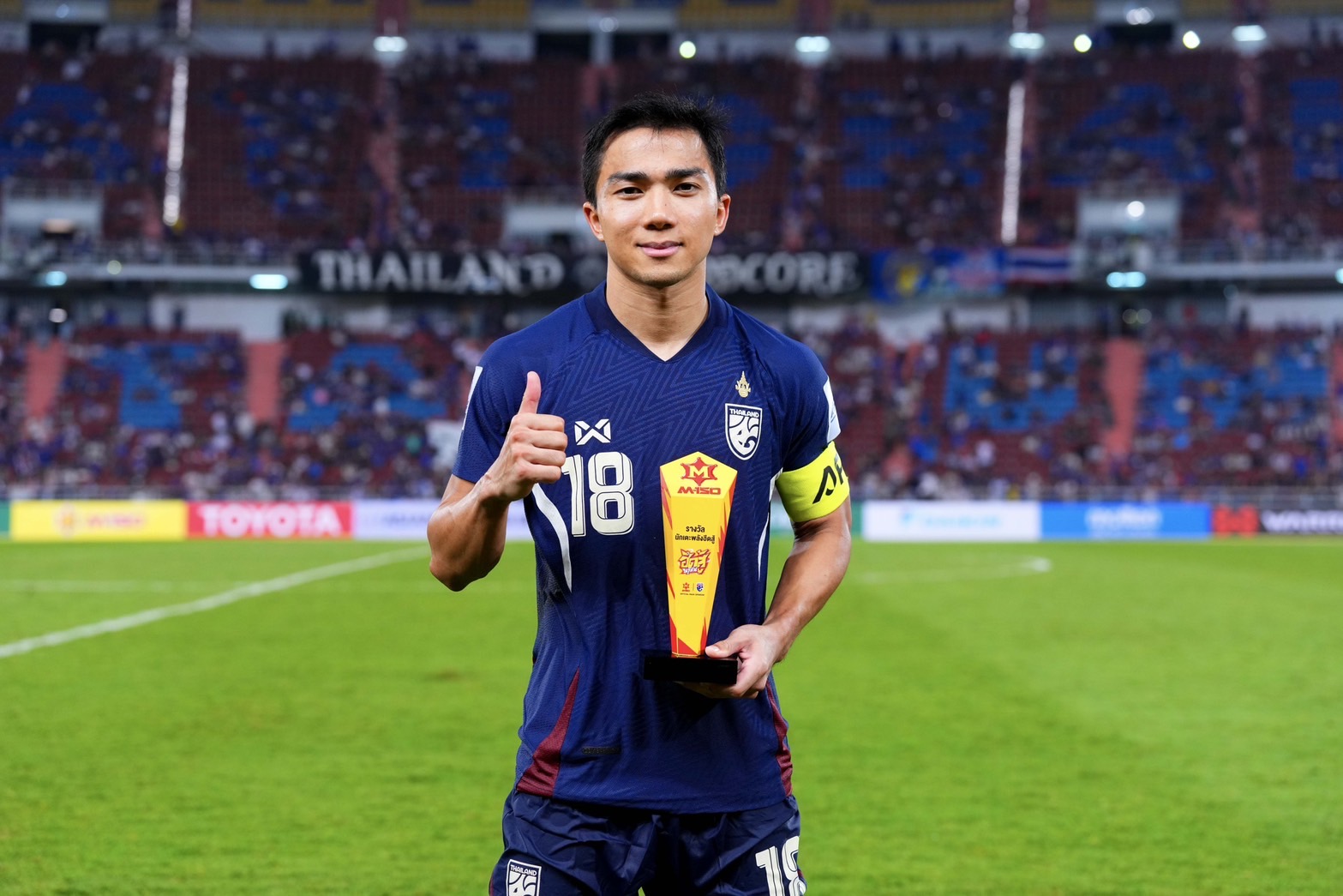 26 มี.ค.68-“เจ” ชนาธิป สรงกระสินธ์ กัปตันทีมชาติไทย ชุดสู้ศึกฟุตบอล เอเชียน คัพ 2027 หลังคว้ารางวัล MVP ในเกมที่ ทีมชาติไทย เปิดบ้านเอาชนะ ทีมชาติศรีลังกา ไปได้ 1-0 ที่สนามราชมังคลากีฬาสถาน ประเดิมนัดแรกก็คว้า 3 แต้มแรกไปได้อย่างเฉียบสำหรับทีมชาติไทย เมื่อวันที่ 25 มีนาคมที่ผ่านมา
