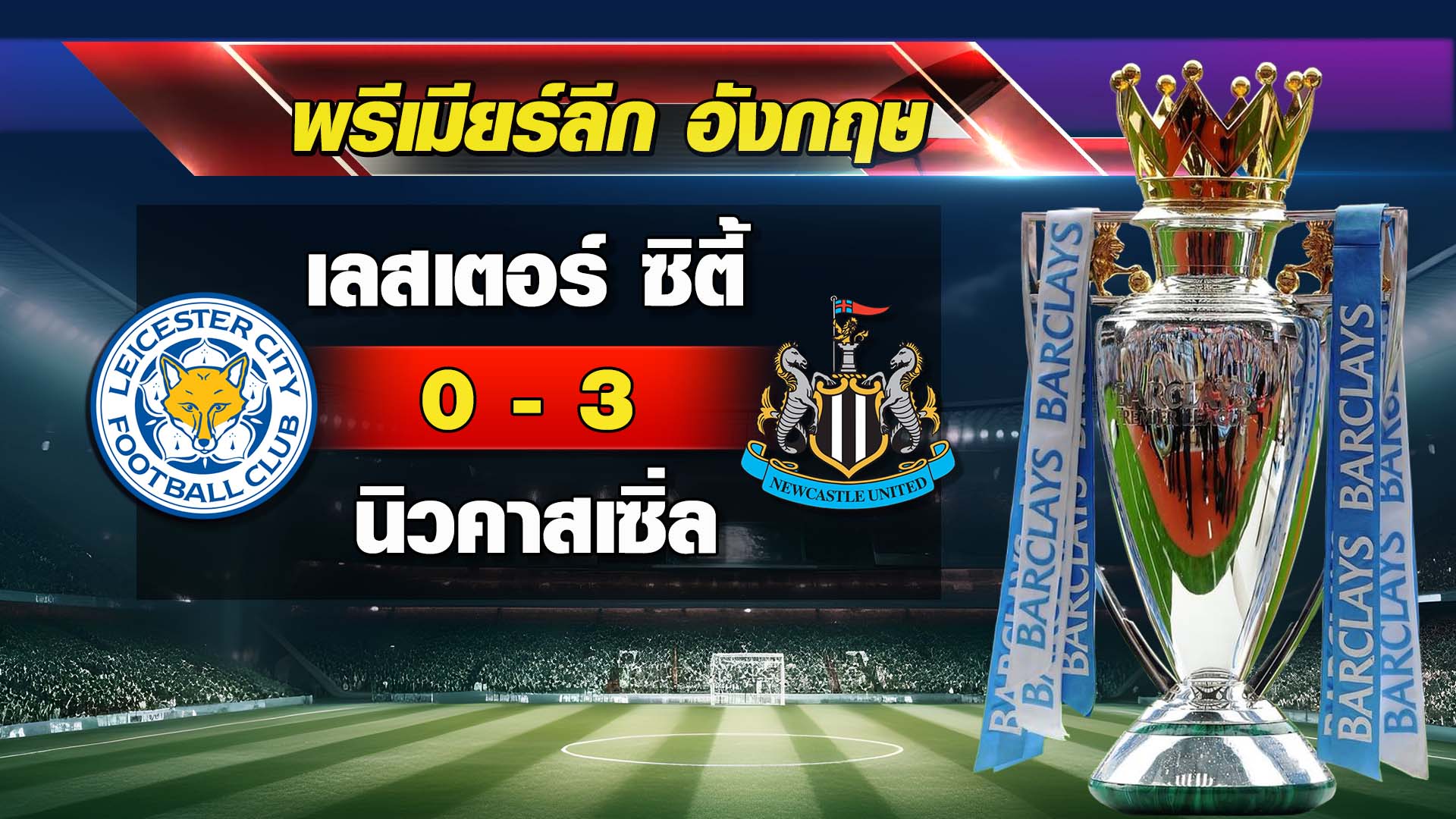 ผลฟุตบอลพรีเมียร์ลีก อังกฤษ เมื่อคืนนี้ เลสเตอร์ ซิตี้ เปิดบ้านแพ้ นิวคาสเซิล 0-3 ทำให้ เลสเตอร์ แพ้ในบ้าน 8 นัดติดต่อกัน เป็นทีมแรกในประวัติศาสตร์พรีเมียร์ลีก เตะ 31 นัด มี 17 คะแนน อยู่ที่ 19 โอกาสตกชั้นสูง ตามหลังโซนปลอดภัยถึง 15 คะแนน ส่วน นิวคาสเซิล รั้งอันดับ 5 มี 53 คะแนน