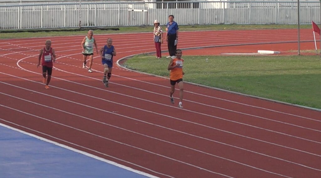 รายการ 200 เมตร รุ่นอายุ 90-94 ปี คุณตาบัวหาญ สิงหรัตน์ จากขอนแก่น ลงแข่งขันคนเดียวในลู่ที่ 2 ทำสถิติ 53.90 วินาที คว้าเหรียญทองที่ 2 ต่อจาก 100 เมตร