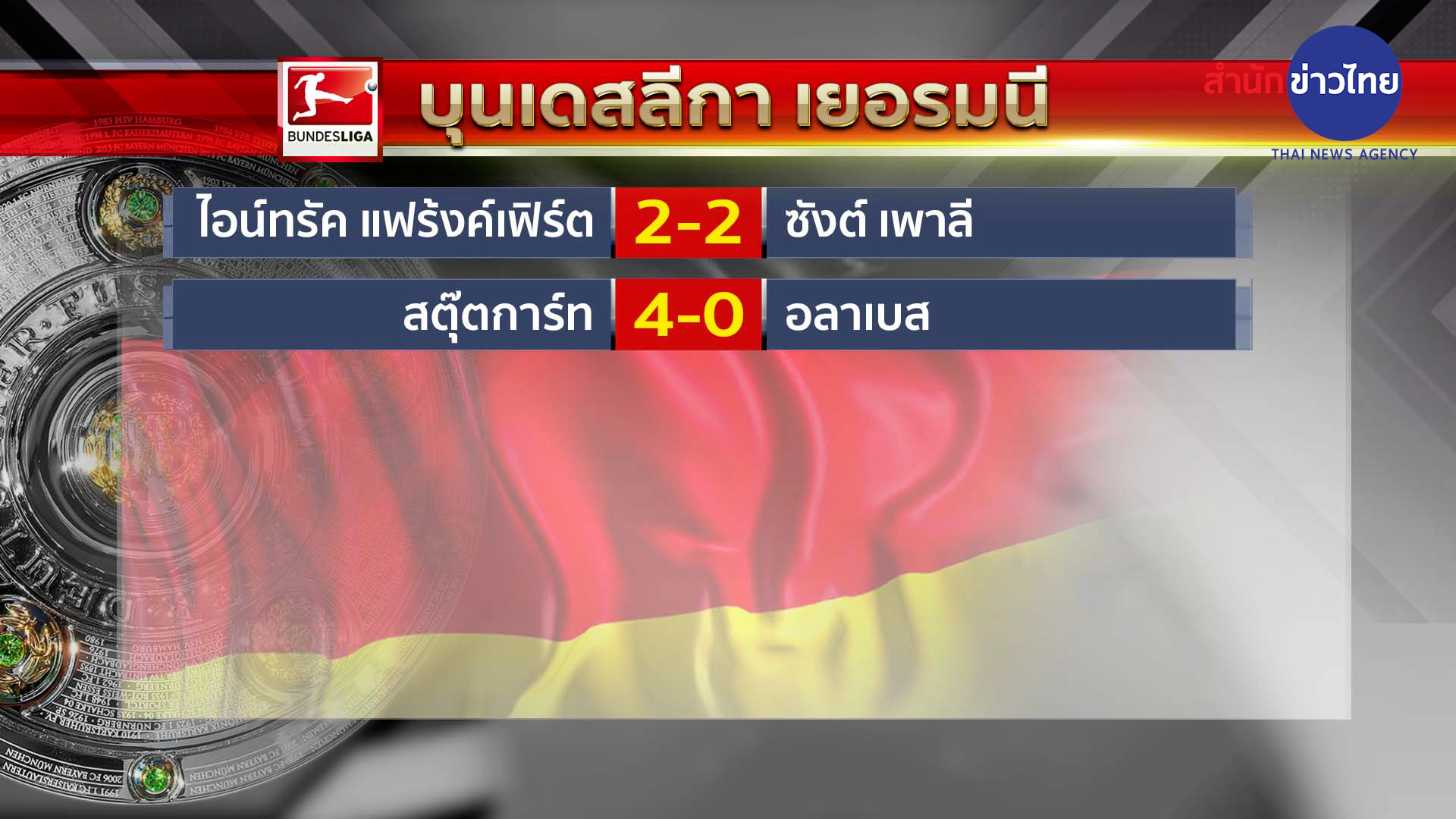 ผลคู่อื่น ไอน์ทรัค แฟร้งค์เฟิร์ต เสมอ ซังต์ เพาลี 2-2 สตุ๊ตการ์ท ชนะ เอากส์บวร์ก 4-0