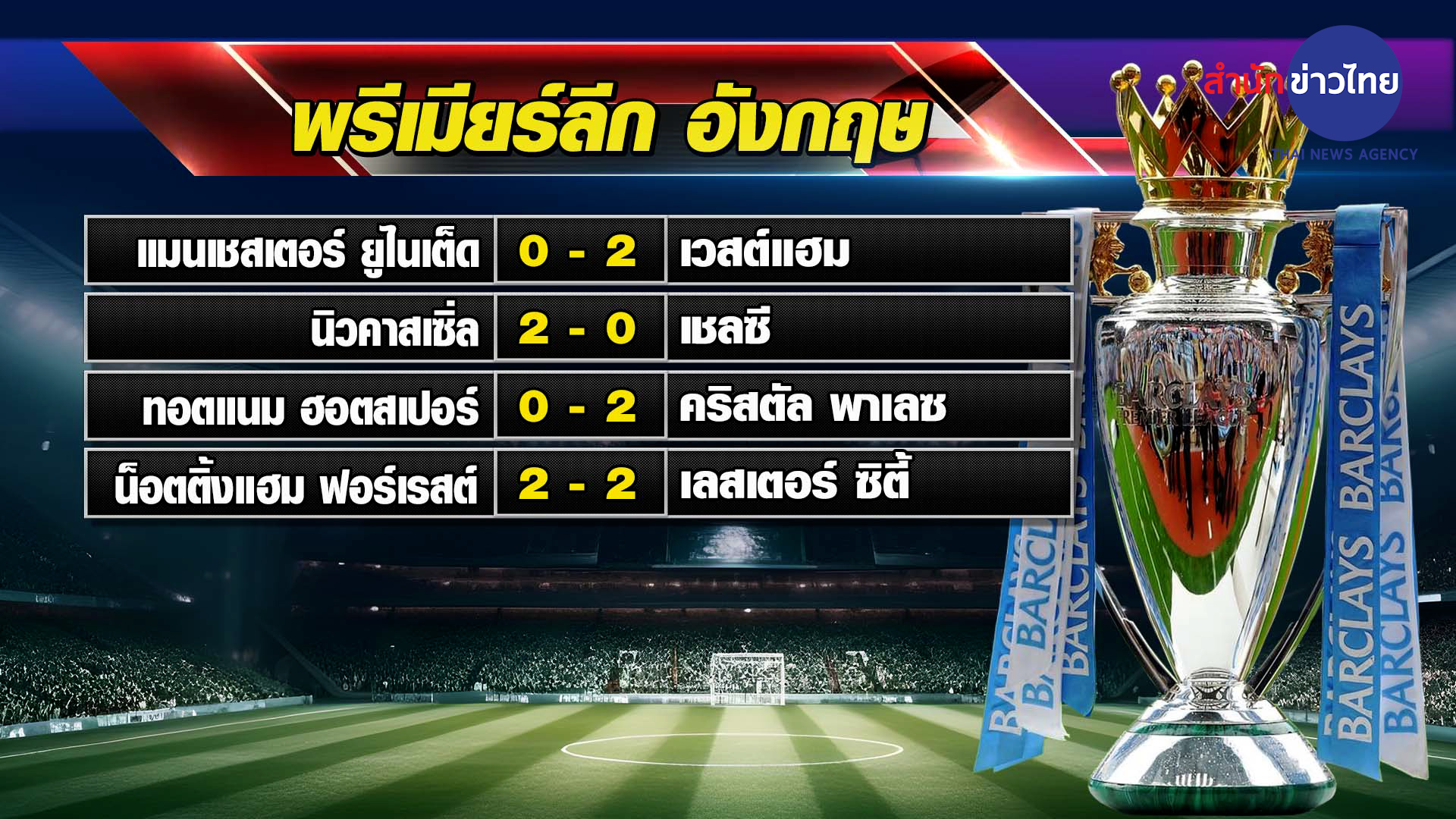 ผลคู่อื่นๆ นิวคาสเซิล ชนะ เชลซี 2-0 ทอตแนม ฮอตสเปอร์ แพ้ คริสตัล พาเลซ 0-2 น็อตติงแฮม ฟอร์เรสต์ เสมอ เลสเตอร์ ซิตี้ 2-2
