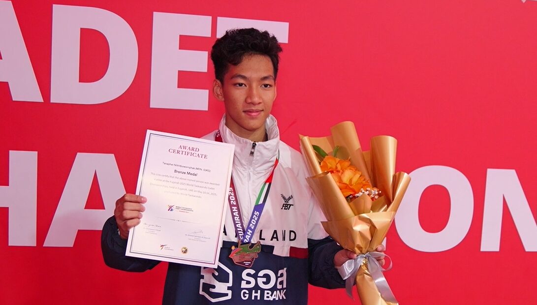 สหรัฐอาหรับเอมิเรตส์ 14 พ.ค. – “น้องเต็งหนึ่ง” ธนภัทร นิธิศบวรภัค คว้าเหรียญทองแดง รุ่น 53 กก.ชาย ศึกเทควันโดยุวชนชิงแชมป์โลก ที่ยูเออี