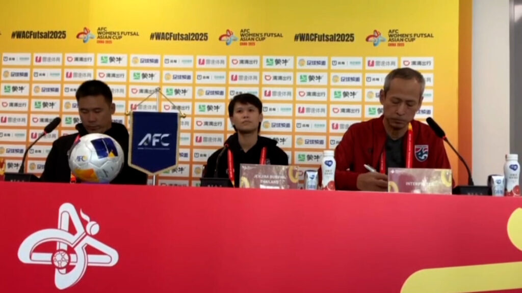 ความเคลื่อนไหวก่อนเกมการแข่งขันฟุตซอลหญิงชิงแชมป์เอเชีย 2025 (AFC Women’s Futsal Asian Cup 2025) รอบชิงชนะเลิศ ระหว่างทีมชาติไทย พบ ญี่ปุ่น ในค่ำวันนี้ เวลา 19.00 น.ตามเวลาประเทศไทย ที่สนามกีฬาโฮฮอต สาธารณรัฐประชาชนจีน ล่าสุดเมื่อวานนี้ สมาพันธ์ฟุตบอลแห่งเอเชีย หรือ เอเอฟซี ได้จัดงานแถลงข่าวก่อนเกม โดยฟุตซอลหญิงไทย ส่งนายกฤษฎา สัจจกุล ผู้จัดการทีม พร้อมด้วย “โค้ชโอ” ธนาธร สันทนาประสิทธิ์ หัวหน้าผู้ฝึกสอน และ เจนจิรา บุบผา ริมเส้นของทีมร่วมแถลงข่าว