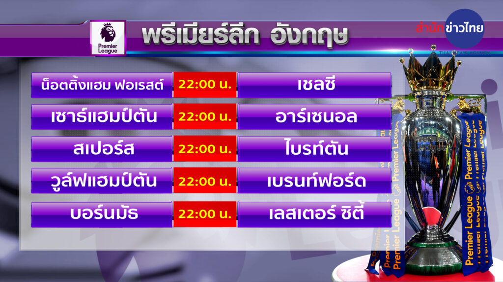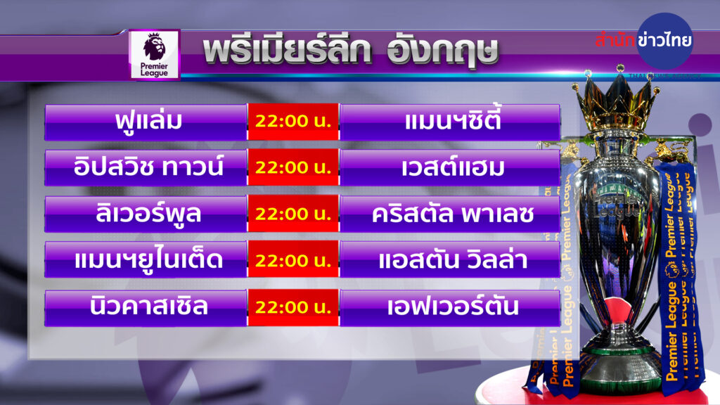 โปรแกรมพรีเมียร์ลีก อังกฤษ นัดปิดฤดูกาล คืนนี้