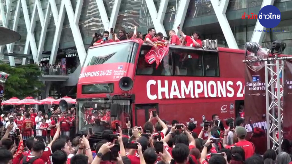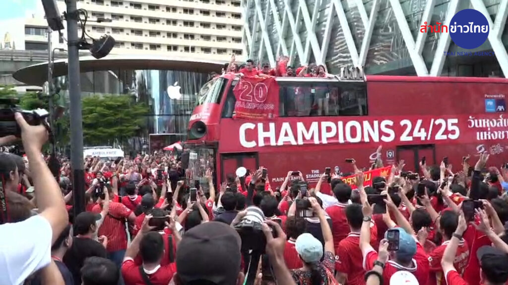 ยอห์น อาร์เน่ รีเซ่ ตำนานนักเตะหงส์แดง “ลิเวอร์พูล” ร่วมแห่ฉลองแชมป์ลีกสูงสุดสมัยที่ 20 ของสโมสร กับแฟนบอล “เดอะค็อป” ในเมืองไทย กิจกรรม “วันหงส์แดงแห่งชาติ” โดยใช้เส้นทางเริ่มต้นจากศูนย์การค้าเซ็นทรัลเวิลด์ มุ่งหน้าถนนราชดําริ ถนนพหลโยธิน อนุสาวรีย์ชัยสมรภูมิ และปิดท้ายที่เซ็นทรัลเวิลด์ .-สำนักข่าวไทย