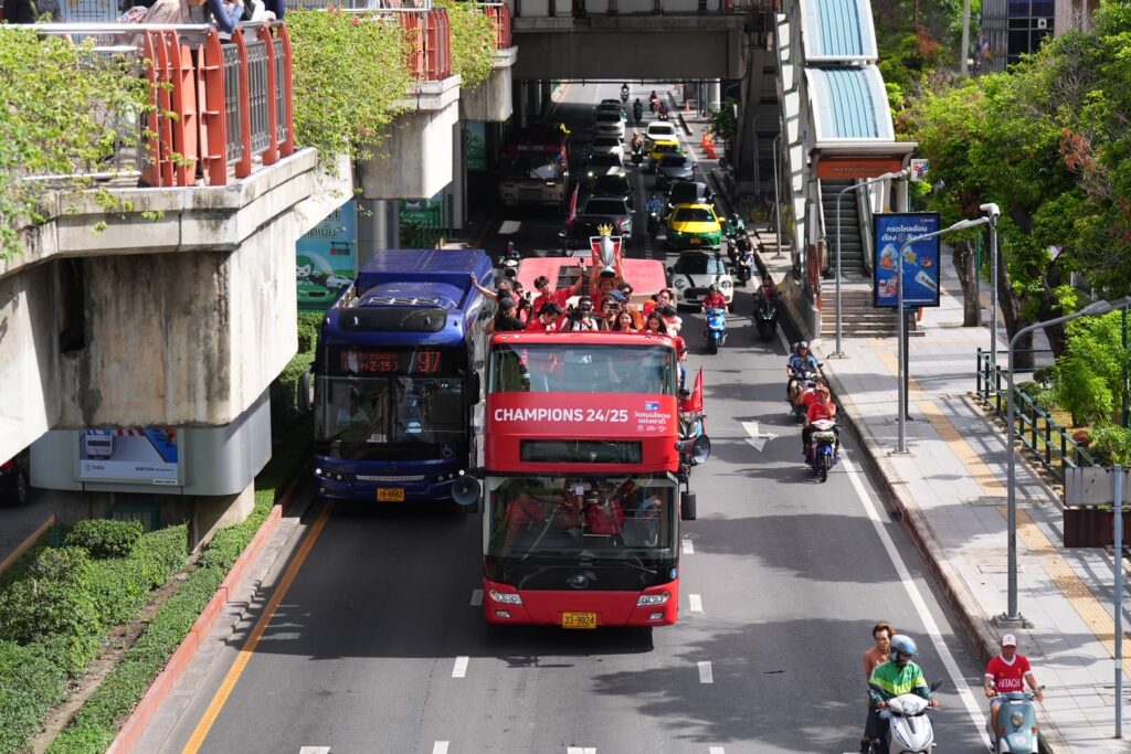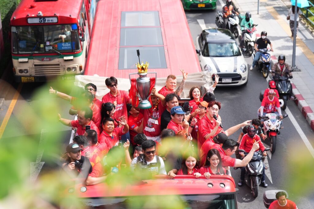 ต่อด้วยอีกหนึ่งไฮไลท์สำคัญในเวลา 15.00-17.30 น. กับ กิจกรรมรถเเห่กลางลานเซ็นทรัลเวิลด์ ที่คณะผู้จัดทั้งหมดพร้อมใจกันเนรมิตขึ้น โดยมีจุดเริ่มต้น ณ ลานกิจกรรม centralwOrld พร้อมเชิญชวนให้แฟนหงส์แดงมารวมกันที่หน้าเซ็นทรัลเวิลด์ กับการเนรมิตภาพประวัติศาสตร์ “การแห่แชมป์หงส์แดง กลาง กทม. นำโดย ยอห์น อาร์เน่ รีเซ่, ผู้บริหาร บริษัทกรุงไทย-แอกซ่า ประกันชีวิต จำกัด (มหาชน) และ อินฟลูเอนเซอร์สายหงส์แดง “เส้นทางเริ่มต้นจาก ศูนย์การค้าเซ็นทรัลเวิลด์ —> ถนนราชดําริ —> ถนนพหลโยธิน —> อนุเสาวรีย์ชัยสมรภูมิ และกลับมาสิ้นสุด ขบวนอีกครัง ที่ศูนย์การค้าเซ็นทรัลเวิลด์ ภายใต้การบริหารจัดการตามระเบียบการจราจรอย่างเคร่งครัด