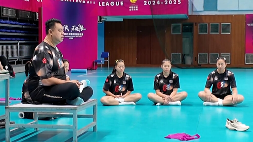 จีน 2 มิ.ย.- “โค้ชอ๊อต” หัวหน้าผู้ฝึกสอนวอลเลย์บอลหญิงทีมชาติไทย ให้นักกีฬาทำสมาธิก่อนฝึกซ้อม เตรียมลุยศึกวอลเลย์บอลหญิง เนชั่นส์ ลีก 2025 สนามแรก
