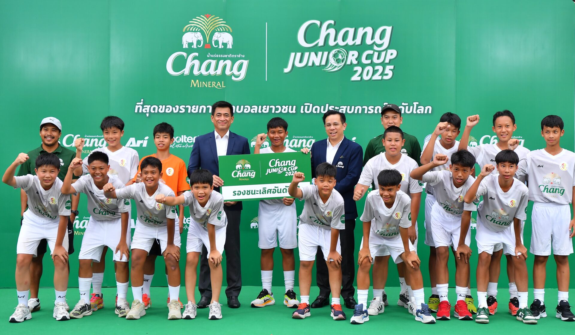 “น้ำแร่ธรรมชาติตราช้าง” อยู่เคียงข้างวงการฟุตบอล พร้อมยกระดับวงการฟุตบอลสู่เวทีโลก ระเบิดศึกฟุตบอลเยาวชนรุ่นอายุ 13 ปีที่ยิ่งใหญ่ที่สุดในประเทศไทย รายการ “Chang Junior Cup 2025” ที่สุดของรายการแข่งขันฟุตบอลเยาวชน ต่อยอดสู่นักฟุตบอลอาชีพ