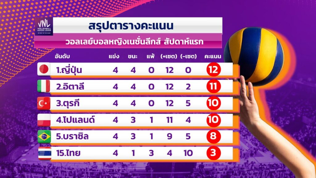 สำหรับทีมวอลเลย์บอลสาวไทย จะลงสนามในวันที่ 18 มิ.ย. เวลา 16.00 น. พบกับ ญี่ปุ่น, วันที่ 19 มิ.ย. เวลา 16.00 น. พบ อิตาลี, วันที่ 21 มิ.ย. เวลา 15.30 น. พบ เช็ก และวันที่ 22 มิ.ย. เวลา 12.00 น. พบ บัลแกเรีย .-สำนักข่าวไทย