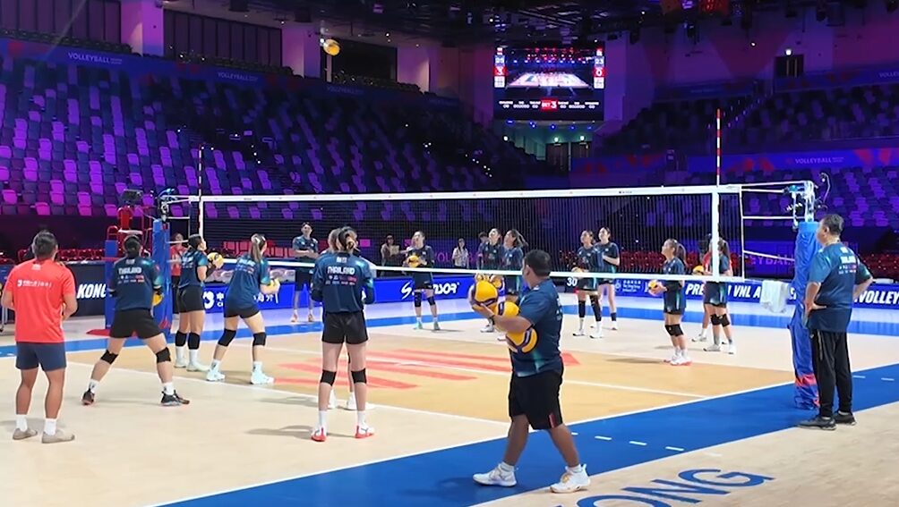 ความเคลื่อนไหวการแข่งขันวอลเลย์บอลหญิงเนชันลีก 2025 หรือ VNL 2025 สัปดาห์ที่ 2 ระหว่างวันที่ 18–22 มิถุนายน ที่เขตบริหารพิเศษฮ่องกง โดยเมื่อช่วงบ่ายที่ผ่านมา “โค้ชอ๊อต” เกียรติพงษ์ รัชตเกรียงไกร หัวหน้าผู้ฝึกสอนทีมชาติไทย นำทีมลูกยางสาวไทย ลงฝึกซ้อมที่สนามแข่งขันไคตั๊ก สเตเดียม เพื่อเตรียมความพร้อมก่อนลงประเดิมสนามนัดแรก พบ ญี่ปุ่น ในเย็นวันพรุ่งนี้ เวลา 16.00 น. ตามเวลาประเทศไทย โดยใช้เวลาในการซ้อม 1 ชั่วโมงครึ่ง หลังวอร์มโค้ชอ๊อต ให้ทีมแบ่งข้างเล่นเกม เพื่อเน้นการไล่บอล และซ้อมระบบการเล่นเพื่อเตรียมพบกับญี่ปุ่นวันพรุ่งนี้ โดยทีมชุดนี้ยังคงนำทีมโดย “เพียว” อัจฉราพร คงยศ กัปตันทีม , “ชมพู่” พรพรรณ เกิดปราชญ์, “บุ๋มบิ๋ม” ชัชชุอร โมกศรี, “บีม” พิมพิชยา ก๊กรัมย์, “แนน” ทัดดาว นึกแจ้ง, “แป้น” ปิยะนุช แป้นน้อย