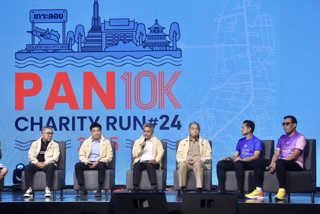 28 มิ.ย.68 ฮอลล์ 100 ไบเทค บางนา-นายสมมาต ขุนเศษฐ ประธานกรรมการบริหาร บริษัท แพนเอเซียฟุตแวร์ จำกัด (มหาชน), นายวีกิจ มานะโรจน์กิจ นายอำเภอศรีราชา, นายฉัตรชัย ทิมกระจ่าง นายกเทศมนตรีเมืองศรีราชา พร้อมด้วย “เต๋า” สมชาย เข็มกลัด นักร้องนักแสดง ร่วมแถลงข่าวงานวิ่งการกุศล “แพน 10K แชริตี้ รัน 2025” PAN 10K Charity Run ครั้งที่ 24 ซึ่งกำหนดจัดขึ้นในวันอาทิตย์ที่ 14 ธันวาคม 2568 ณ เกาะลอย อ.ศรีราชา จ.ชลบุรี เมื่อวันศุกร์ที่ 27 มิถุนายน ที่ผ่านมา