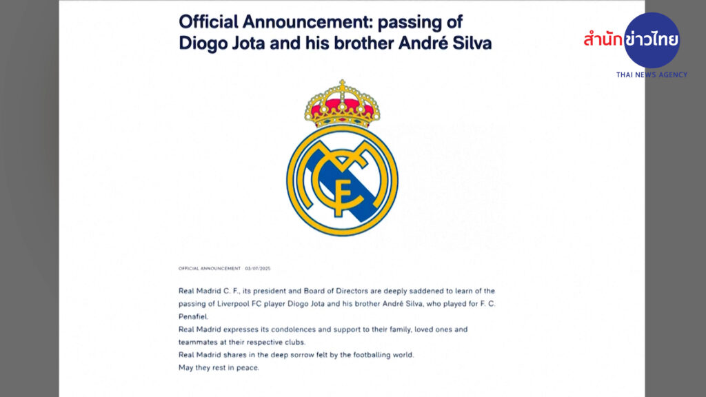 ทีมราชันชุดขาวโพสต์ว่า สโมสรฟุตบอลเรอัล มาดริด ประธานสโมสรและคณะกรรมการบริหารสโมสรขอแสดงความเสียใจอย่างสุดซึ้งต่อการจากไปของดิโอโก้ โชต้า นักเตะของสโมสรลิเวอร์พูล และอันเดร ซิลวา น้องชายของเขา ซึ่งเคยเล่นให้กับสโมสรเปนาฟิล ขอแสดงความเสียใจและให้กำลังใจครอบครัว คนที่รัก และเพื่อนร่วมทีมในสโมสรของตน สโมสรเรอัล มาดริด ขอร่วมแสดงความเสียใจอย่างสุดซึ้งกับวงการฟุตบอล ขอให้พวกเขาไปสู่สุคติ