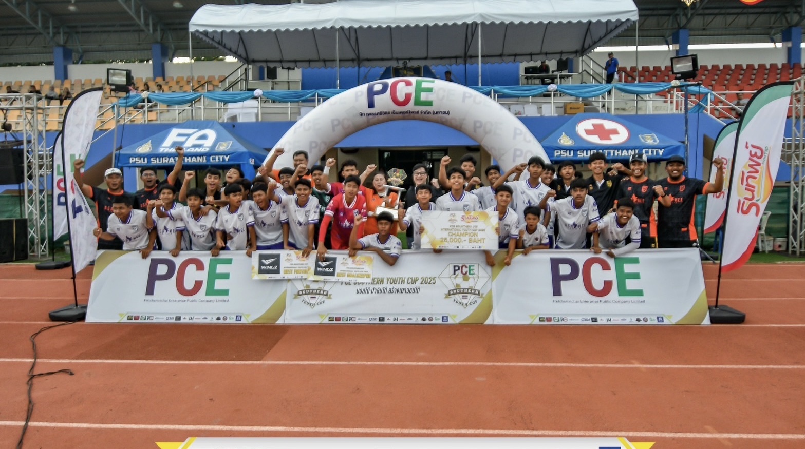 28 ก.ค.68 สุราษฎร์ธานี-ศึกฟุตบอล PCE SOUTHERN YOUTH CUP 2025 U15 รอบนานาชาติ ระหว่างวันที่ 25-27 กรกฎาคม 2568 โดยมี “โค้ชโย่ง”วรวุธ ศรีมะฆะ อดีตโค้ชทีมชาติไทยและนักเตะทีมชาติ เป็นประธานฝ่ายจัดการแข่งขัน ที่สนามมหาวิทยาลัยสงขลานครินทร์วิทยาเขตสุราษฎร์ธานี จังหวัดสุราษฎร์ธานี โดยก่อนคู่ชิงชนะเลิศ มีฟุตบอลคู่พิเศษ ทีม วีไอพี พีซีอี พบกับ ทีมวีไอพี เทศบาลนครสุราษฎร์ธานี