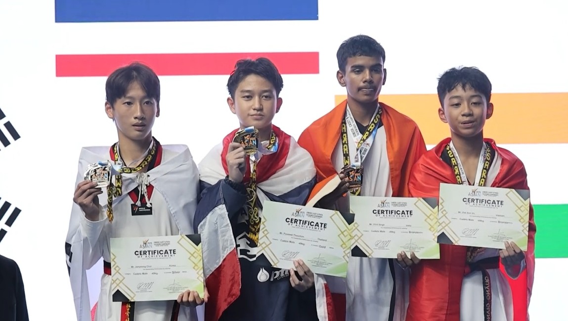 เทควันโดยุวชนและเยาวชนชิงแชมป์เอเชีย รายการ “เอเชียน จูเนียร์-คาเดต เทควันโด แชมเปี้ยนชิพส์ 2025” ที่ ประเทศมาเลเซีย วันสุดท้ายของรุ่นยุวชน รุ่นน้ำหนักไม่เกิน 49 กก.ชาย รอบชิงชนะเลิศ “เสือใหญ่” พศวัต ไทยอุดม เอาชนะ ชอย จุนยอง จากเกาหลีใต้ 2-1 ยก 11-11 (คะแนนเทคนิค พศวัต ดีกว่า), 25-25 (คะแนนเทคนิค เกาหลีใต้ดีกว่า) และ ยกสุดท้ายพศวัตชนะ 16-4 คว้าเหรียญทอง