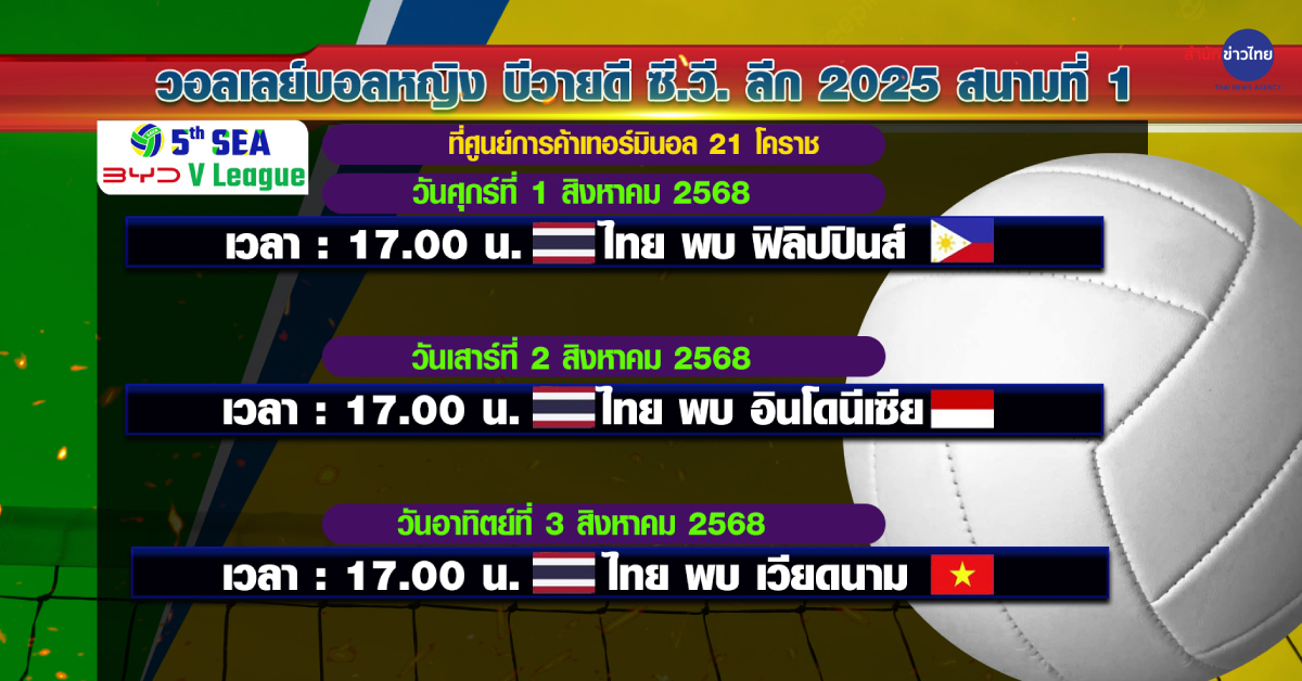 31 ก.ค. – อัจฉราพร คงยศ และพรพรรณ เกิดปราชญ์ นำทีมนักตบลูกยางสาวไทย ลุยศึกวอลเลย์บอลหญิง “BYD SEA V League 2025″ สนามที่ 1 ที่จังหวัดนครราชสีมา