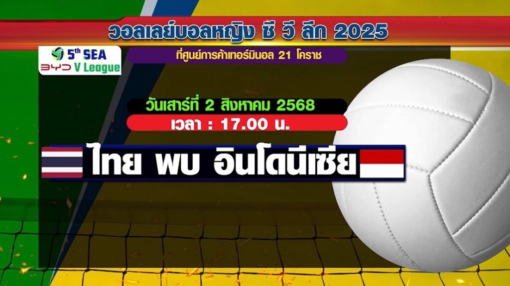 วอลเลย์บอลหญิง “บีวายดี ซี วี.ลีก 2025 สนามที่ 1 ซึ่งจัดขึ้นระหว่างวันที่ 1–3 สิงหาคมนี้ ที่ศูนย์การค้าเทอร์มินอล 21 โคราช จังหวัดนครราชสีมา โดยรายการนี้จัดขึ้นต่อเนื่องเป็นปีที่ 5 มี 4 ชาติจากอาเซียน เข้าร่วมแข่งขัน ประกอบด้วย ไทย, เวียดนาม, อินโดนีเซีย และฟิลิปปินส์